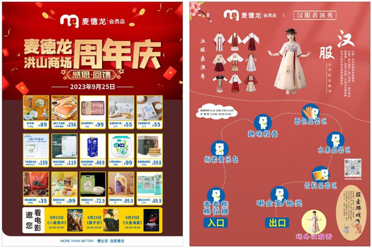 由于周年庆时间临近中秋、国庆双节,麦德龙会员店·洪山店精心准备了汉服表演秀,将于9月23日上午10时许开始,2-16岁的孩子都可以穿上汉服,勇敢登台秀出自我。获奖的小朋友将获得精美礼品一份。