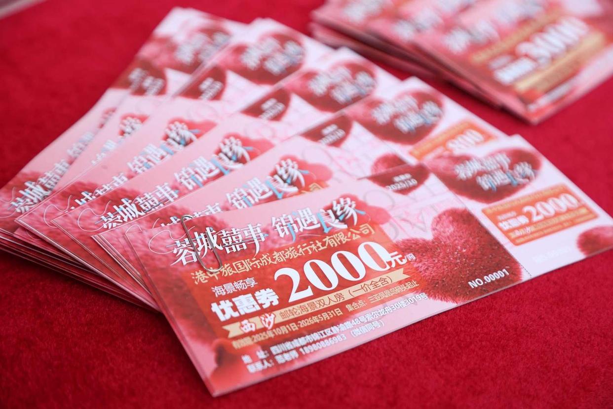 “锦江区文体旅局和民政局为在合江亭婚姻登记处登记的新人准备了抽奖活动,包含了酒店旅行券、婚庆服务等各类奖品。今天早上,已经有不少新人抽奖领取了奖品。有一对新人说想去三亚旅行,刚好抽奖的奖品中有西沙邮轮的2000元优惠券。”锦江区文化体育和旅游局工作人员告诉记者。