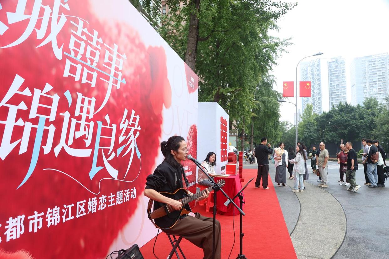 红星新闻记者看到,现场还有成都知名街头艺人现场弹唱,悠扬音乐增添浪漫氛围,以才艺送祝福,彰显城市人文关怀。