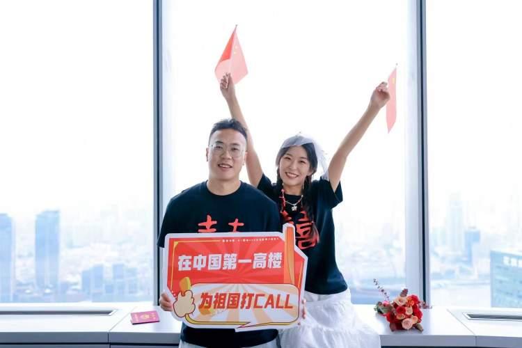 “新中国,生日快乐!”国庆佳节,浦东新区婚姻登记中心迎来“婚登热潮”。今天一早,新人们在上海中心特色婚登点为祖国献上祝福,也挥舞国旗,在祝福墙上写下对家国的憧憬与对未来的期许,拍摄下一组特别的家国同庆纪念照。
