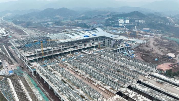 成达万高铁达州南站站房主体结构封顶中国新闻网 昨日
