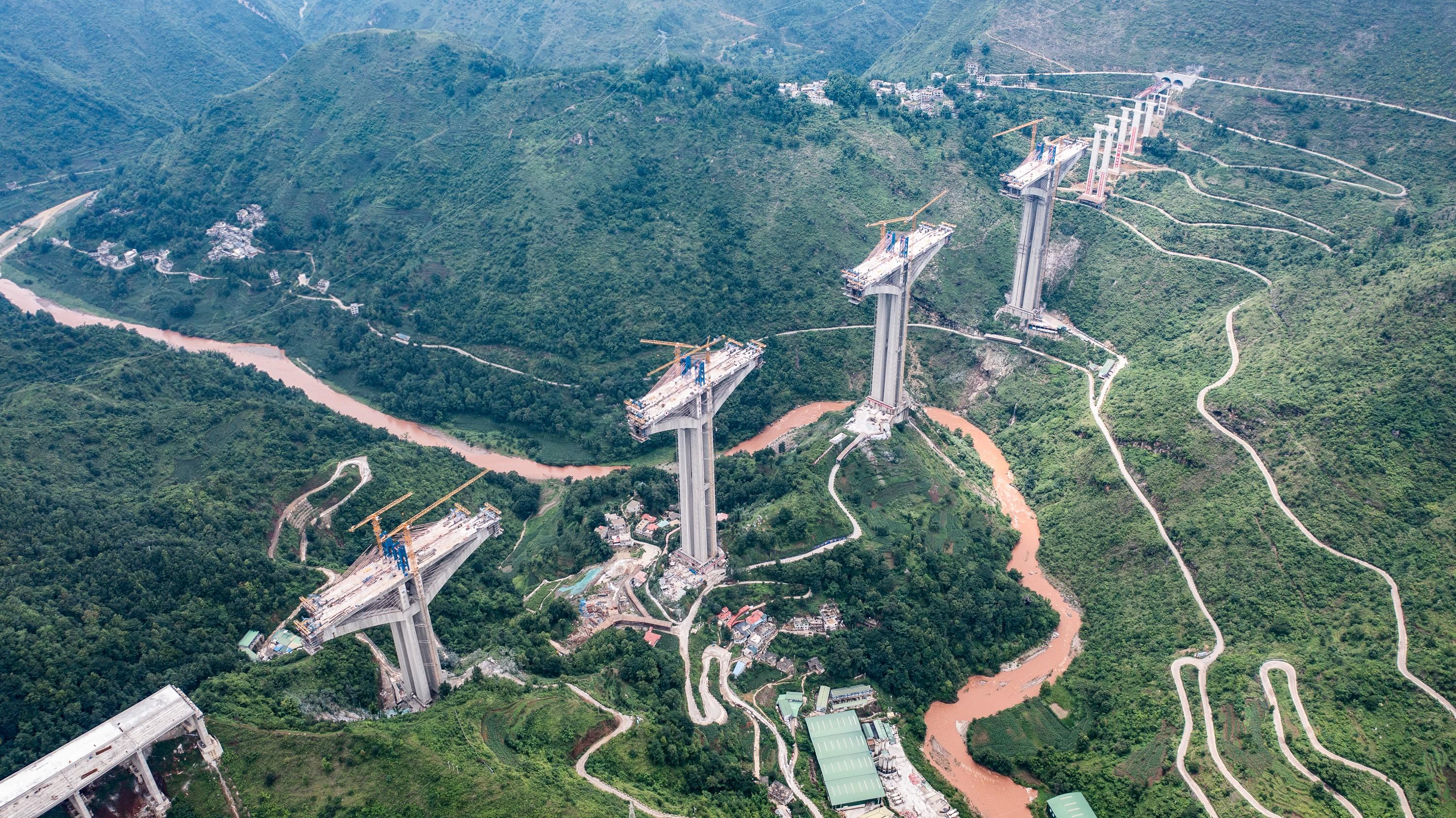 六枝特大桥位于贵州省六盘水市六枝特区中寨乡境内,是纳雍至晴隆高速公路的控制性工程,大桥全长2023.5米,桥面距谷底水面净空315米。