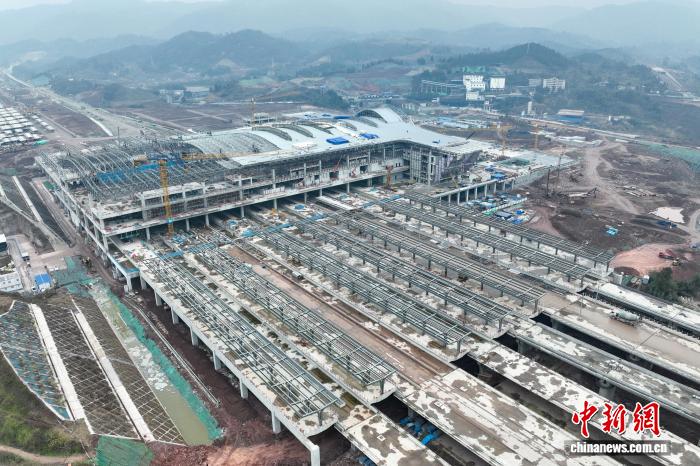 中新网成都1月28日电(记者刘忠俊)记者28日从成达万高铁公司获悉,成达万高铁达州南站高架站房G4区屋面网架已顺利提升到位,标志着该站主体结构(含钢结构)全面封顶,为后续装饰装修及配套工程推进奠定坚实基础。
