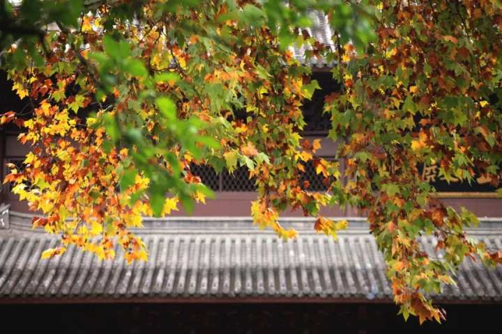 红墙在秋叶的衬托下,更显古意与风雅。特别是屋檐一角的那抹金黄,让人忍不住多拍几张。每个角落有独特的风景一路探寻,总能发现意外惊喜。