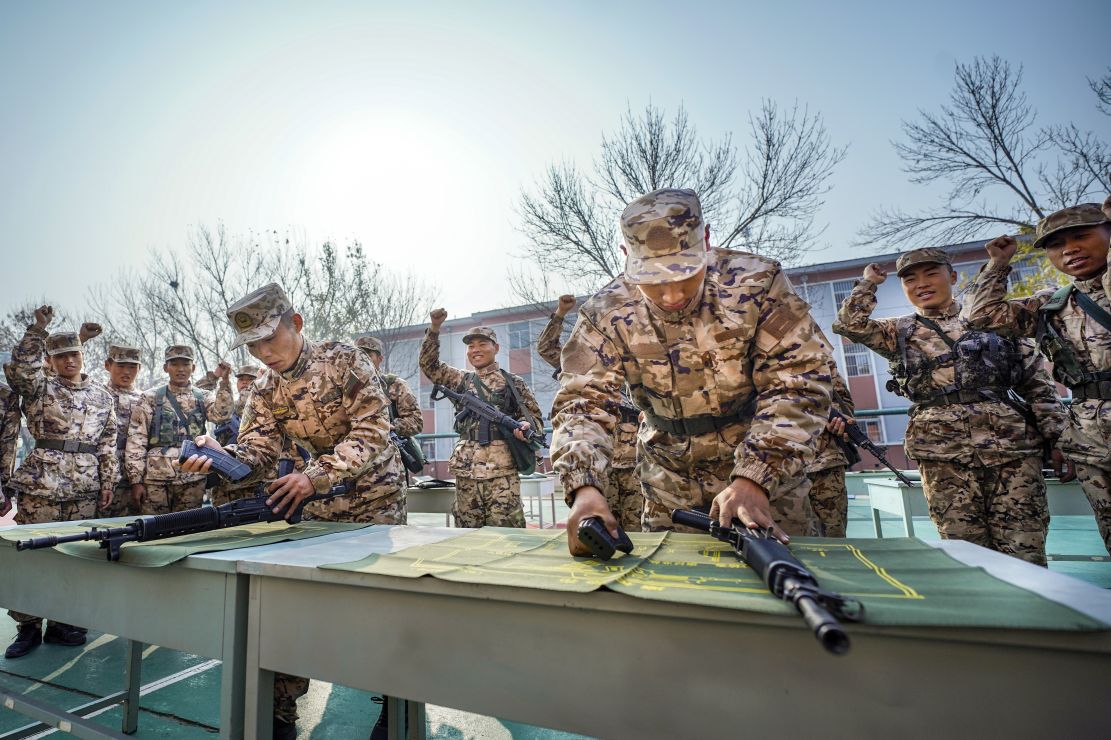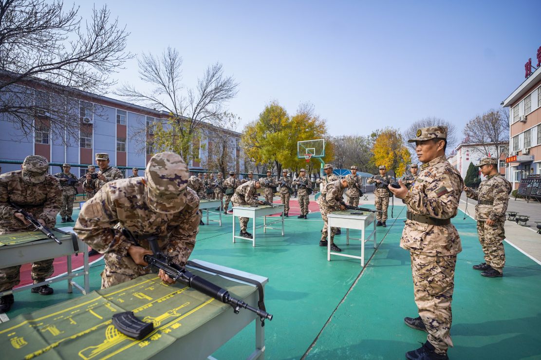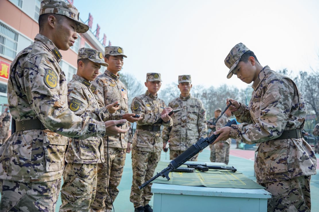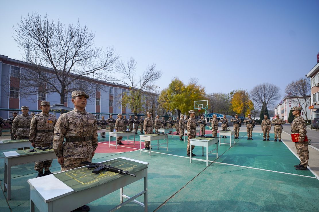“预备,开始!”指挥员一声令下,新战友们迅速进入状态,拆卸、组装,动作干净利索,清脆的金属撞击声此起彼伏。一场武器分解结合竞赛正在武警天津总队新兵团的训练场上进行着。