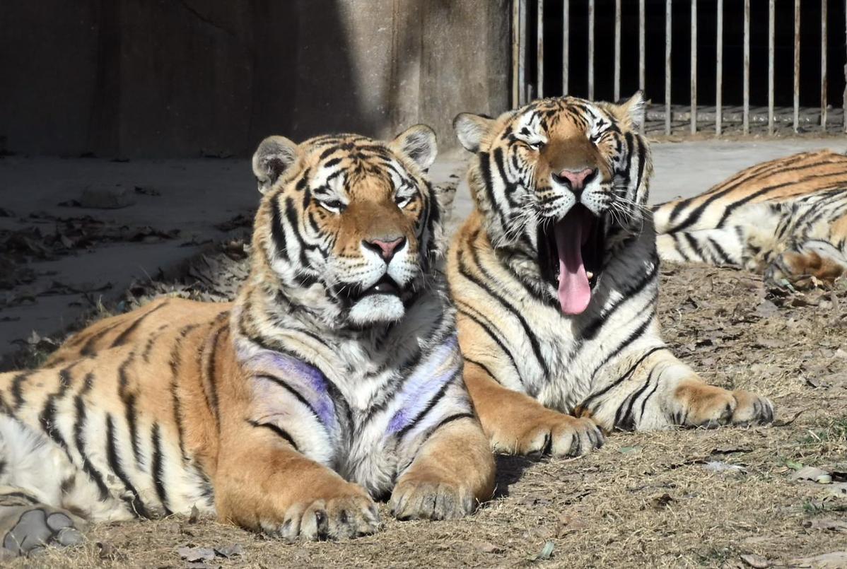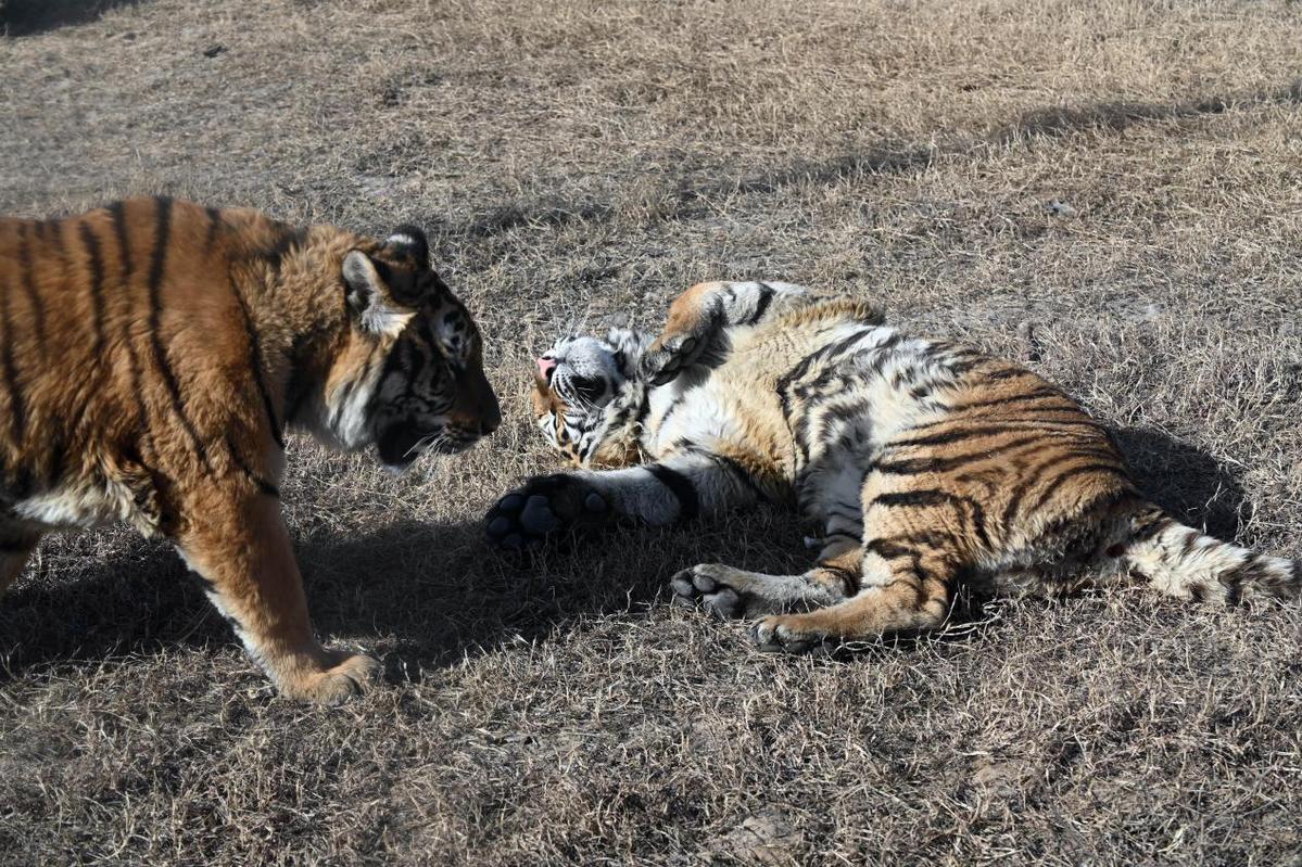 据介绍,和生森林动物乐园内共有老虎、狮子、豹等大型猫科动物近200只,其中,160余只老虎大都是东北虎,以及少量的孟加拉白虎、孟加拉金虎。这里的东北虎虽然身体健硕,但在冬日暖阳下,它们毫无往日凶猛的模样,或三五成群,或单身只影,悠闲踱步,打闹嬉戏,似家猫一般温顺可爱,萌态十足。