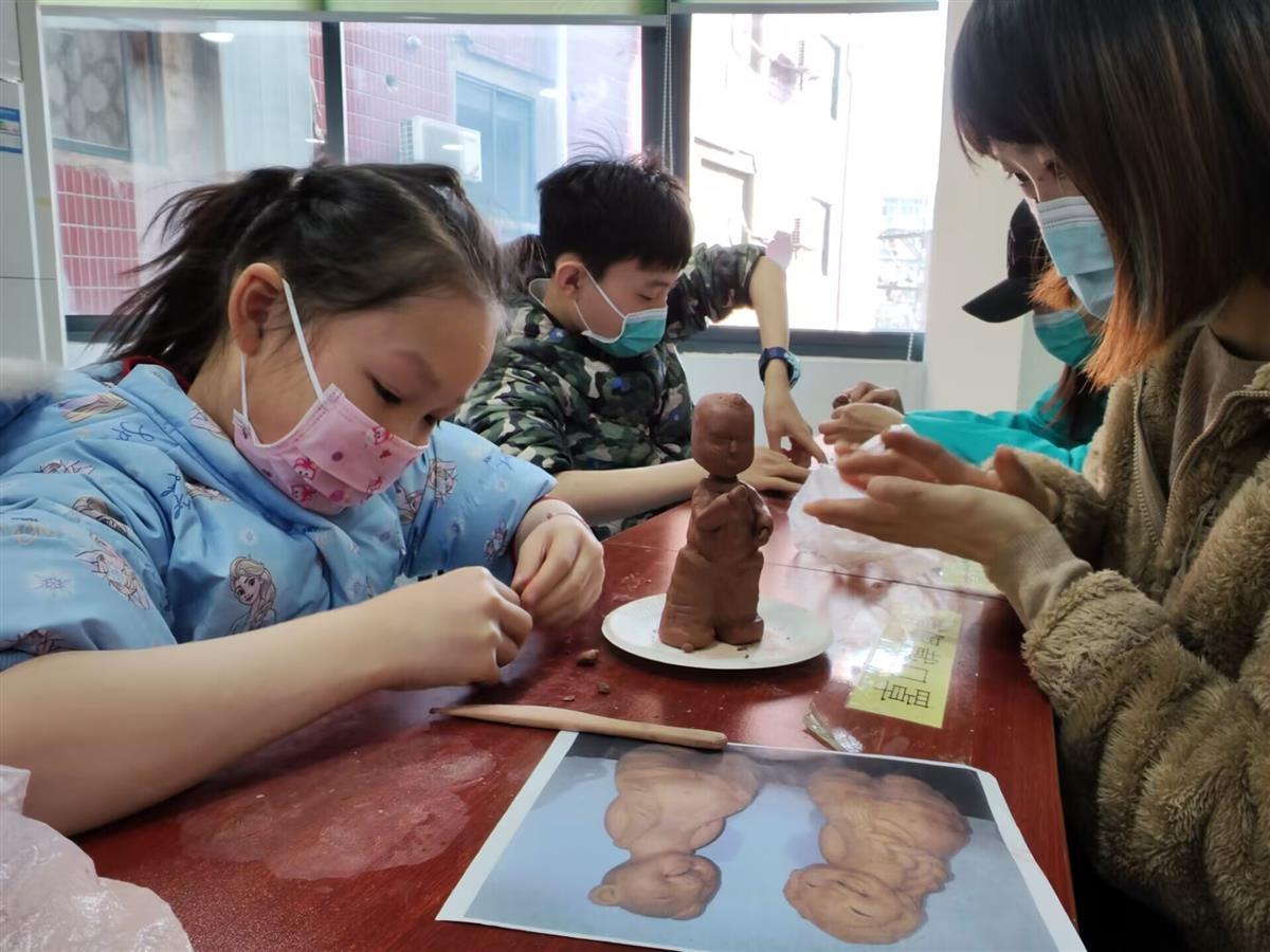 活动中,武汉泥塑大师、“泥人胡”第二代传人封颖讲解了泥塑历史、技艺、基本制作方法和技巧,传播、普及了泥塑传统文化。封颖还耐心地解答了孩子们提出的问题,并手把手教孩子们制作泥塑作品,现场气氛十分活跃。