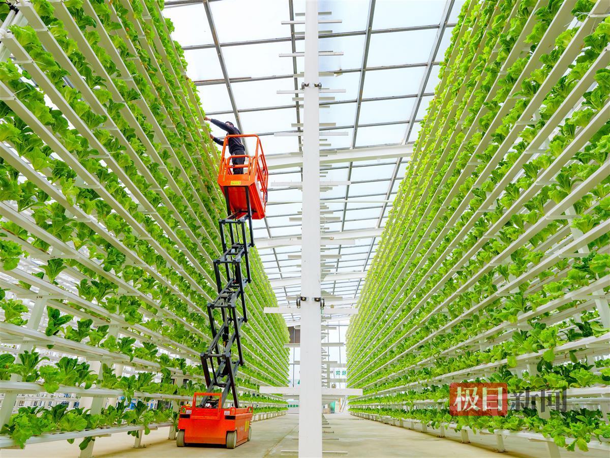 智能光照系统、智能风机湿帘、智能灌溉系统……2月17日,在武汉市江夏区舒安街未来家园现代农业园,科技感十足的智慧农业场馆内,一片绿意盎然。高达15层的水培管道上,生菜、冰花菜、油麦菜、孔雀蓝等4万株蔬菜长势喜人,高架“无土栽培”让这里变身“空中菜园”。