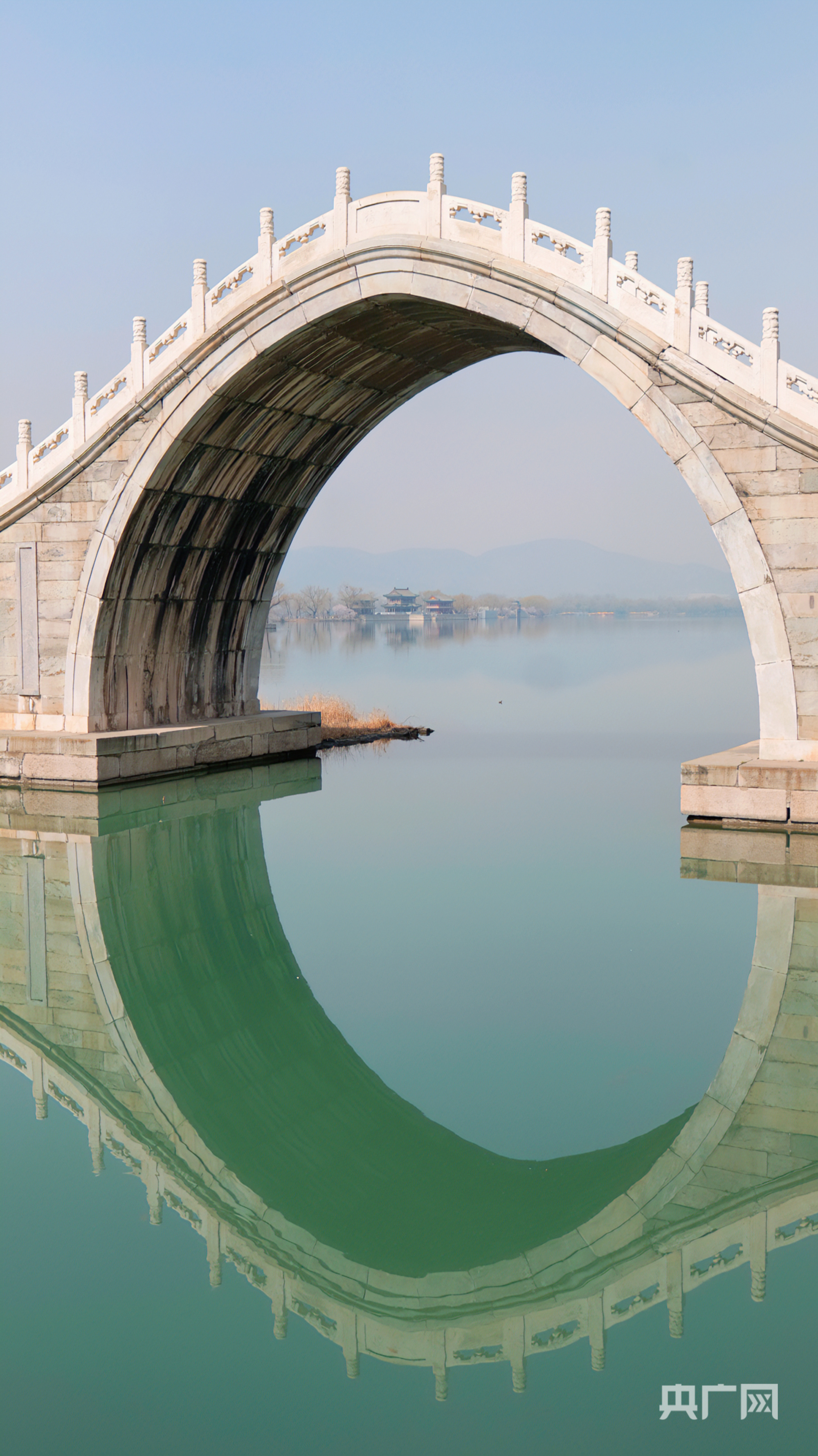春意穿过玉带桥,沿着湖面掠过(央广网记者朱冠安摄)