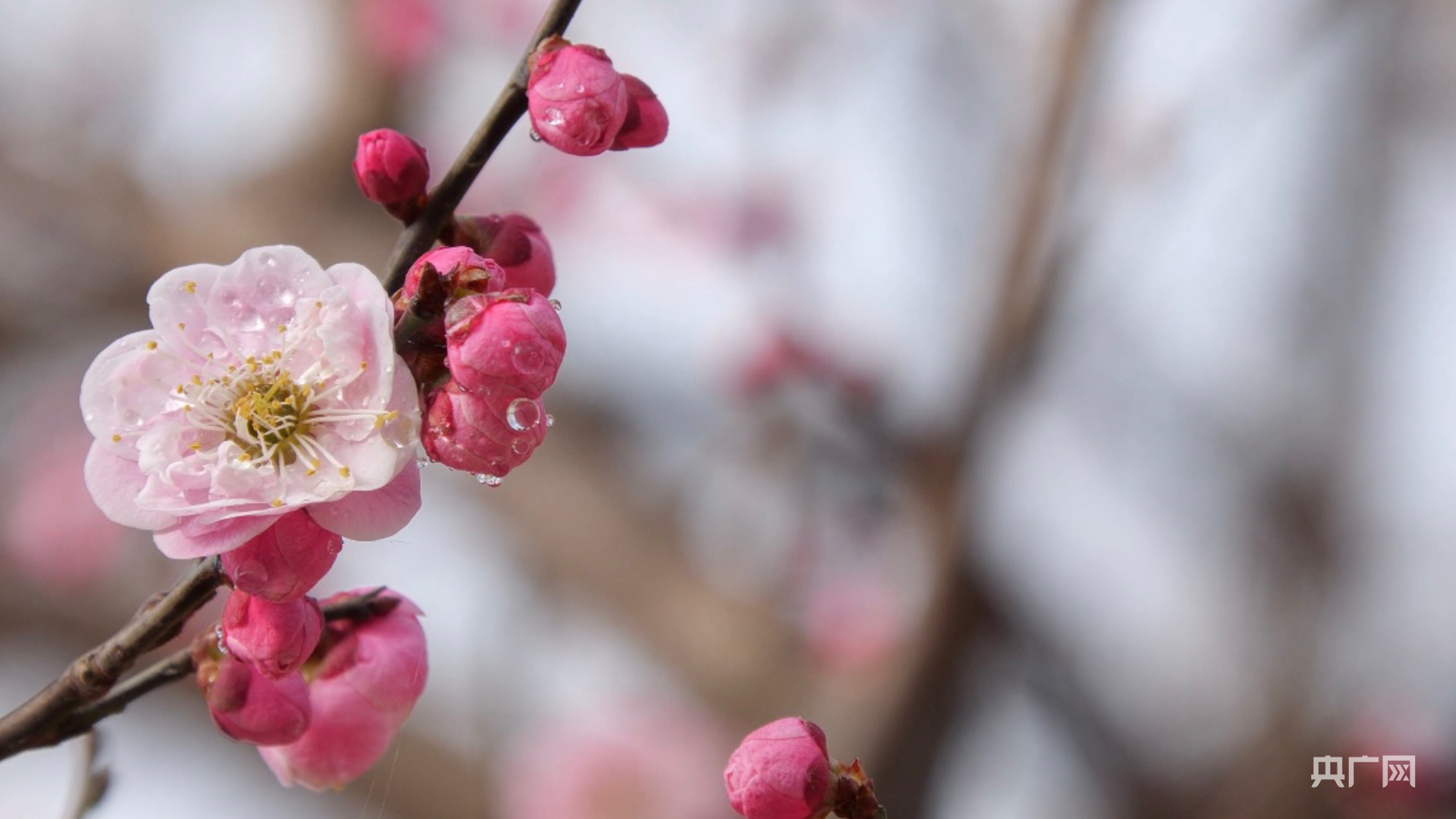 带着露水的梅花娇艳欲滴(央广网记者朱冠安摄)