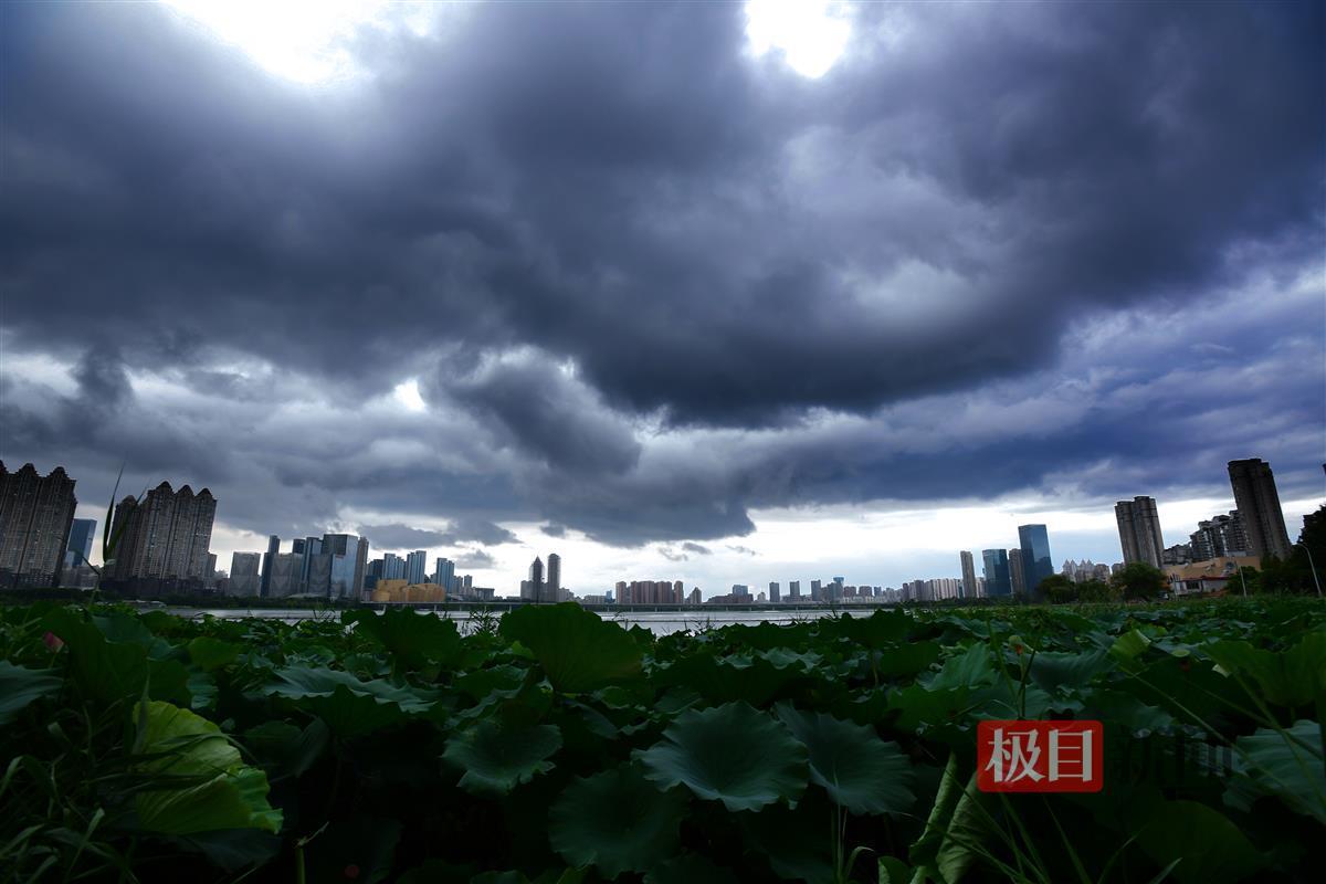 7月28日下午,武汉出现雷暴天气,下午4时许,天空乌云密布,紧接着暴雨倾盆,约一个小时后,暴雨停止,但并未雨过天晴,而是天空乌云密布,乌云中还有很多“窟窿”,阳光从“窟窿”中照射出来,形成一道道特有的奇观。