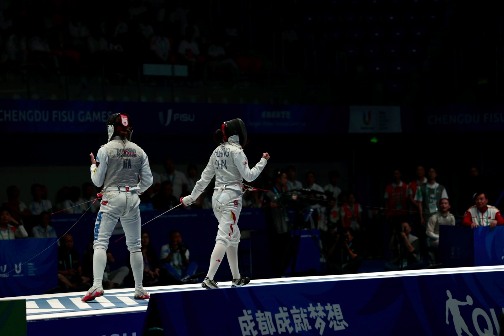 在6日进行的成都大运会击剑项目比赛中,中国队在女子花剑团体与男子重剑团体比赛中双双闯进决赛,最终女子花剑团体击败意大利队,获得一金,男子重剑团体不敌实力强大的法国队,斩获一银。