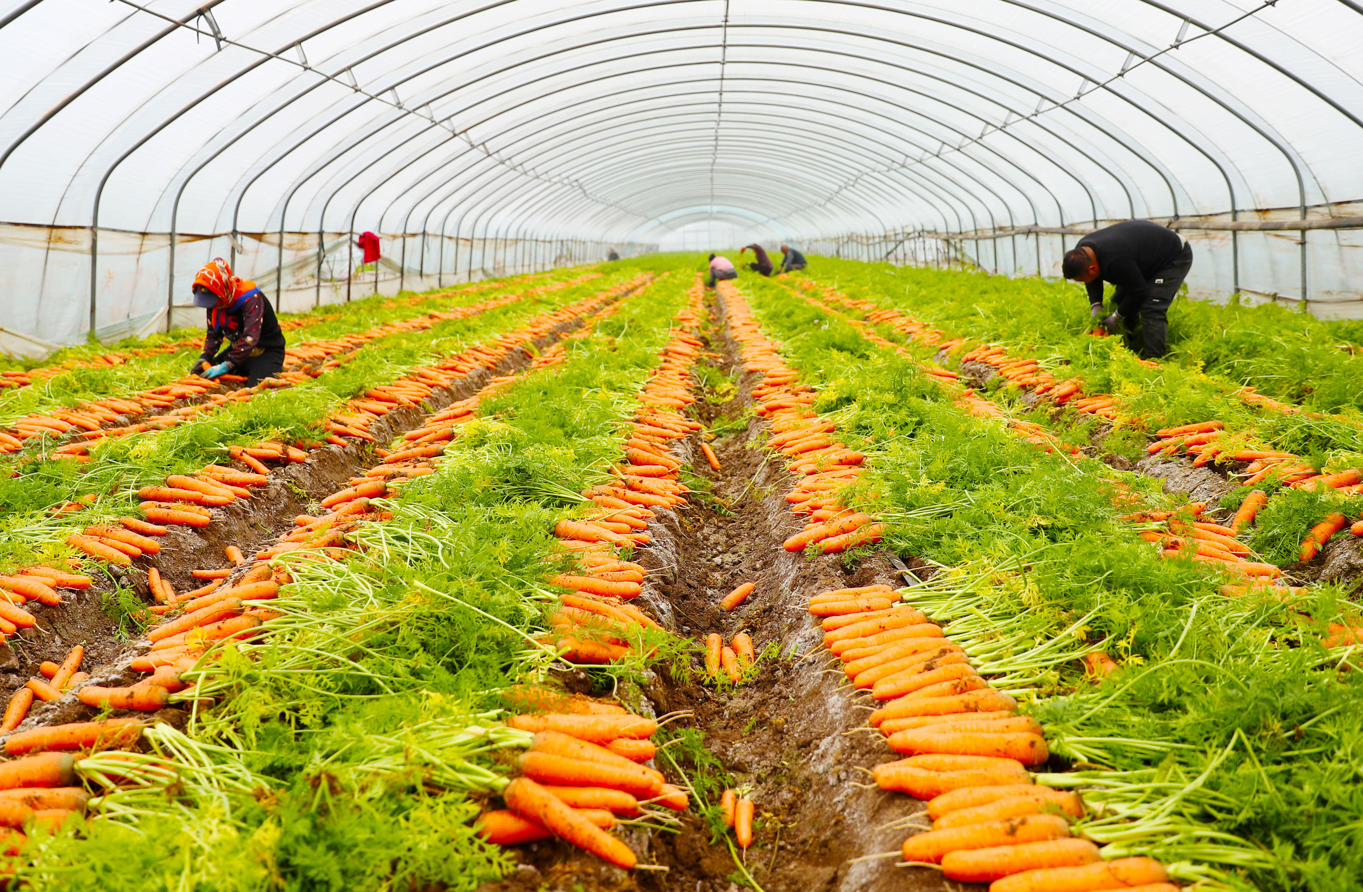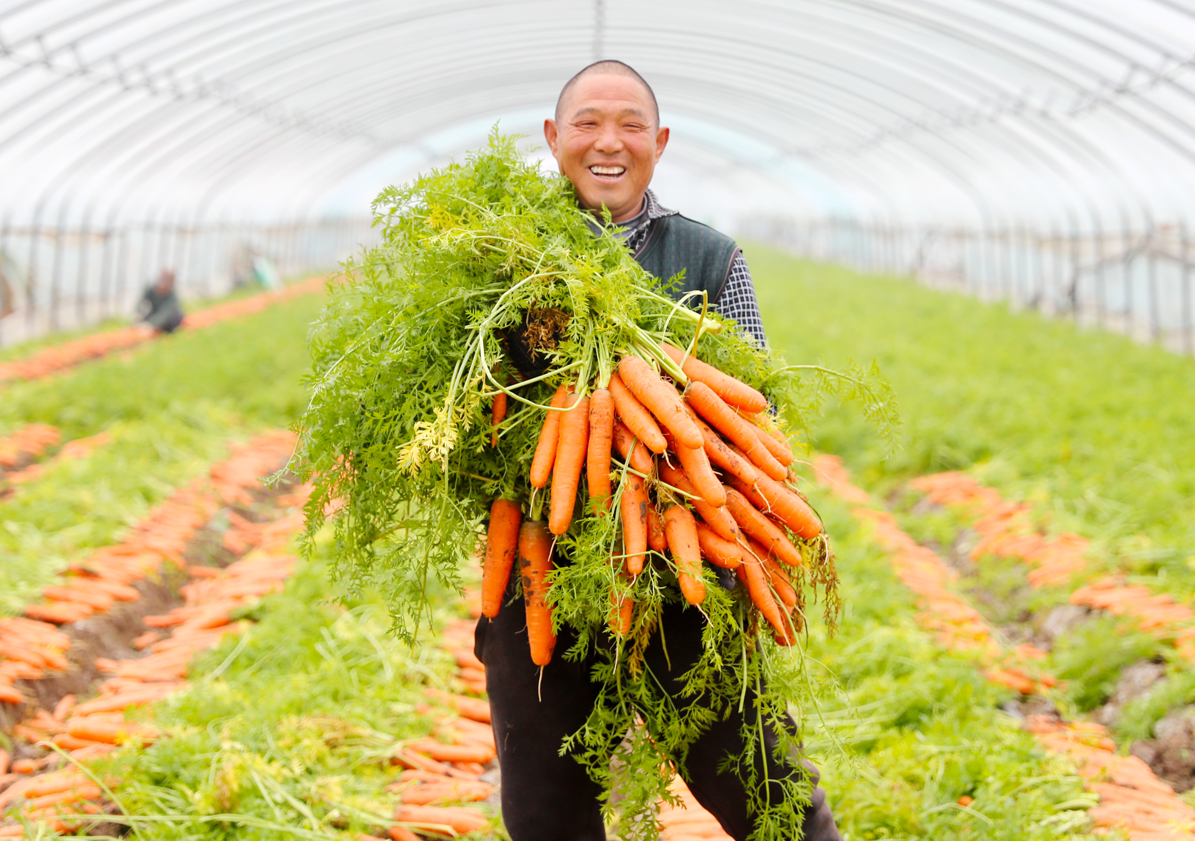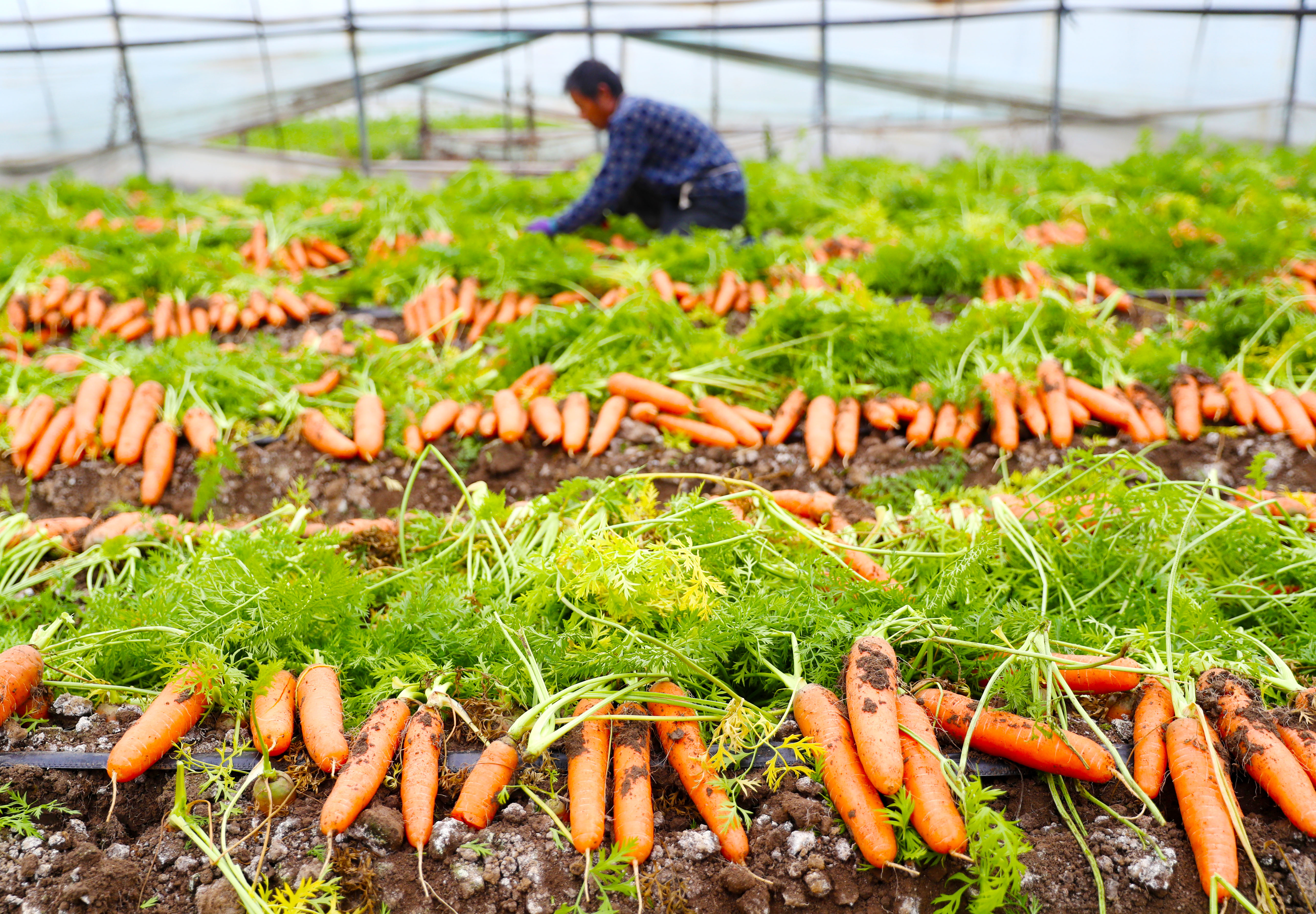 眼下正值胡萝卜丰收的季节,山东青岛莱西市店埠镇的万亩胡萝卜进入采收期。11月26日,记者在店埠镇后屯村看到,当地村民在胡萝卜种植大棚里采收、去缨、清洗、装箱,一派繁忙的丰收景象。