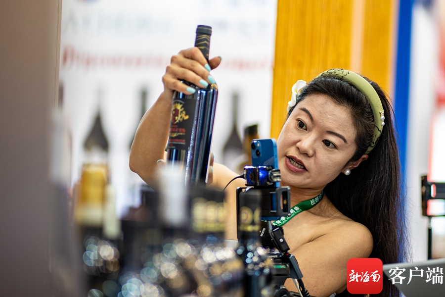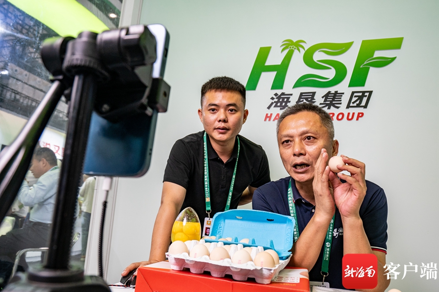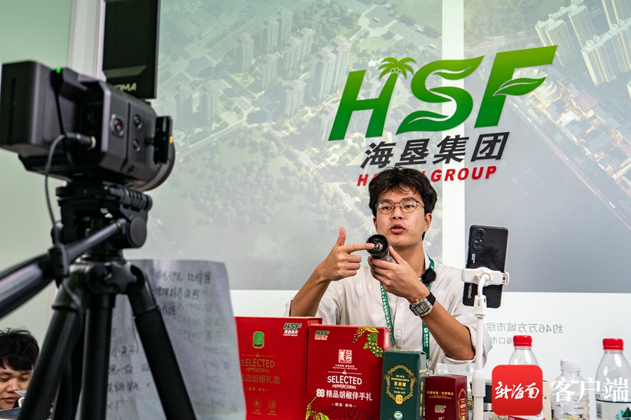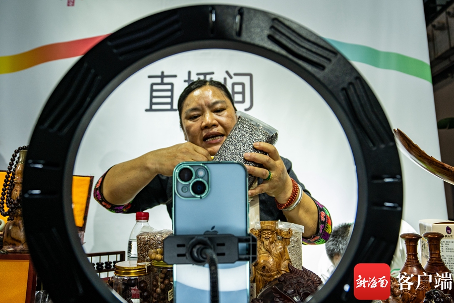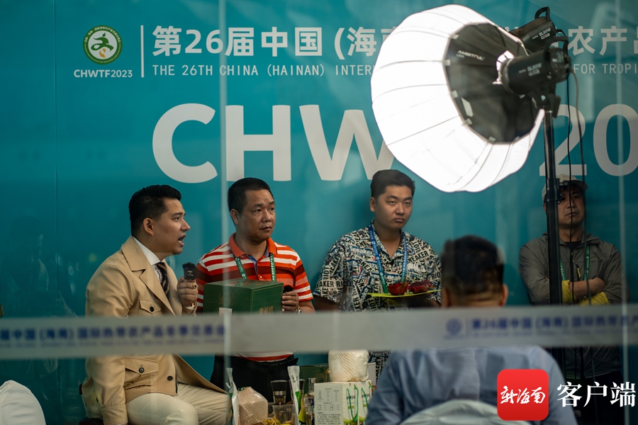 2023年中国(海南)国际热带农产品冬季交易会上,商家在网络直播介绍产品。记者刘孙谋摄