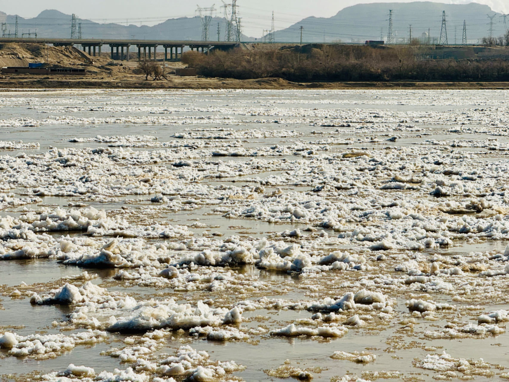 这个冬天,黄河宁夏段出现流凌相对多年平均日期提前1天,随着气温继续下降,流凌长度和密度还将逐渐增加。记者在黄河宁夏段石嘴山河段看到,大量冰凌漂浮于河面上,宛如一朵朵盛开的“冰莲花”。