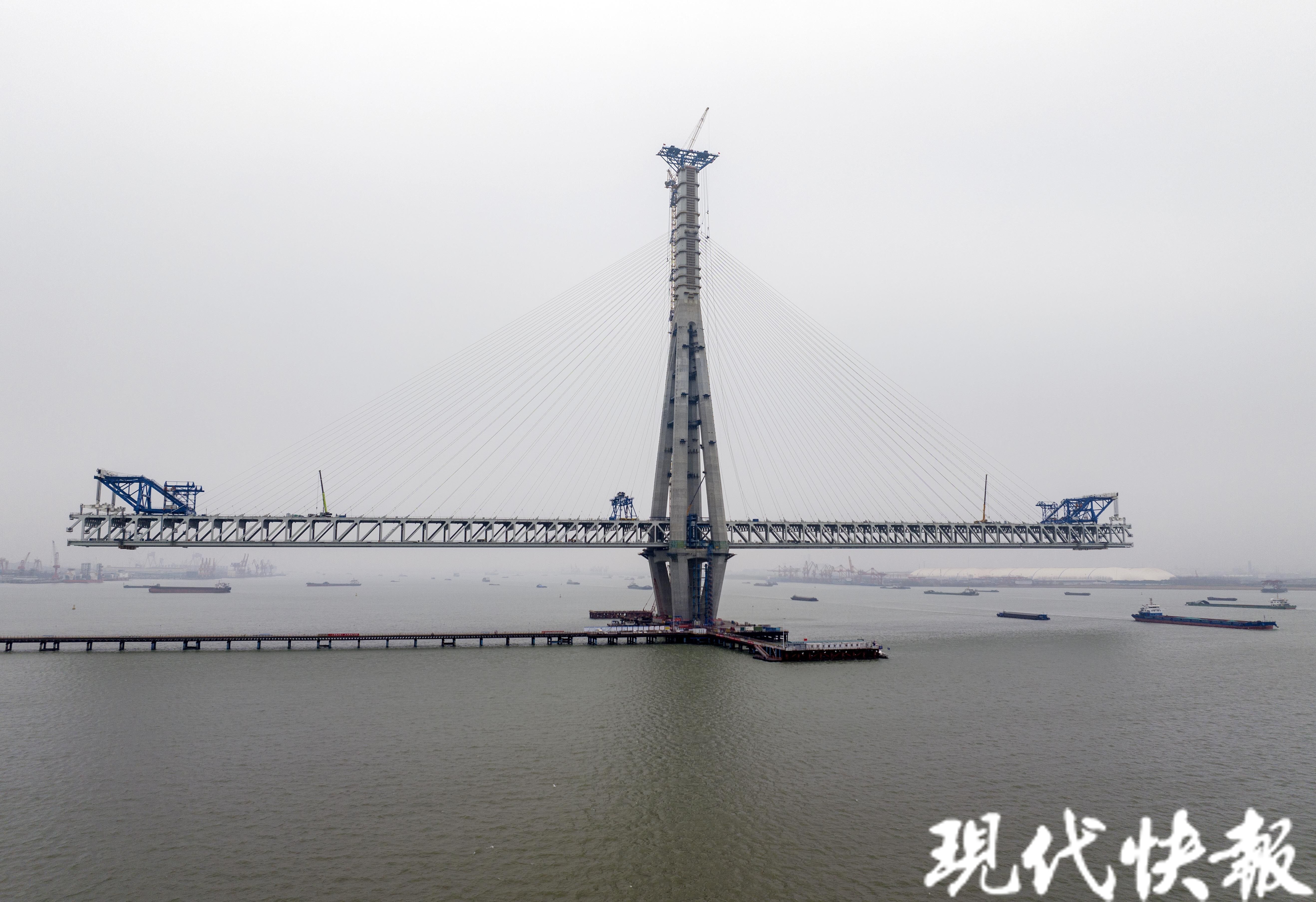 常泰长江大桥是长江经济带综合立体交通走廊的重要项目,连通江苏省常州与泰州两市,为目前在建世界最大跨度公铁两用斜拉桥,是集高速公路、城际铁路、一级公路“三位一体”的过江通道。新华社发(汤德宏摄)