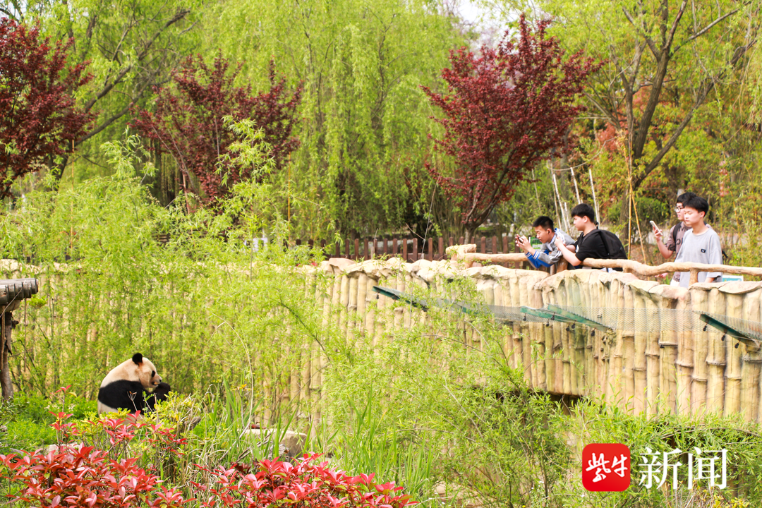 “妈妈,大熊猫吃竹笋的样子真可爱啊,拿着的竹笋好像甜筒一样美味。”在南通森林野生动物园的熊猫馆,一名小朋友看着大熊猫吃竹笋开心地说。