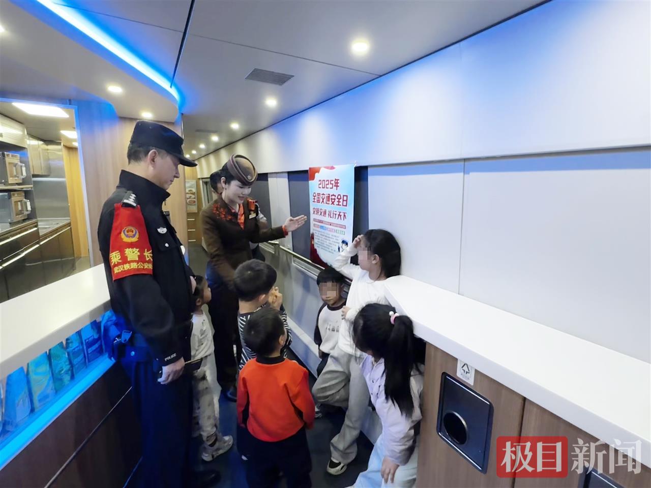12月1日,在由汉口开往北京西的D38次“红旗列车”上,武汉客运段联合铁路公安开展了一场生动的全国交通安全日宣传活动。列车工作人员化身“安全宣传员”,通过知识宣讲、互动问答、实物展示等形式,为旅客带来一堂别开生面的交通安全课。