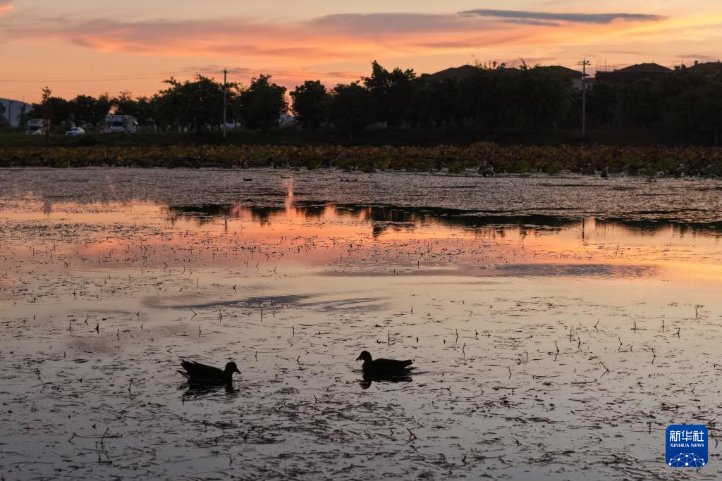 12月1日,候鸟在云南省腾冲市东湖公园栖息(无人机照片)。