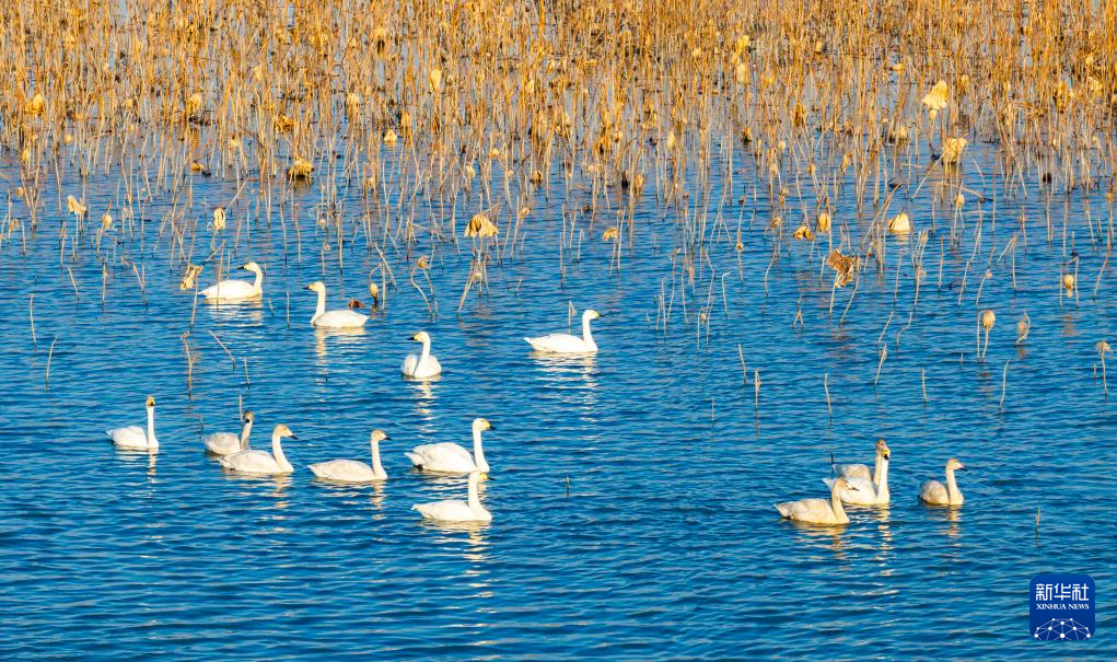 12月1日,群鸟在江苏兴化里下河国家湿地公园内栖息(无人机照片)。