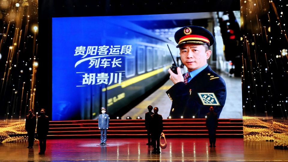 12月10日,贵阳客运段列车长胡贵川在自我介绍。新华社记者 邢广利 摄
