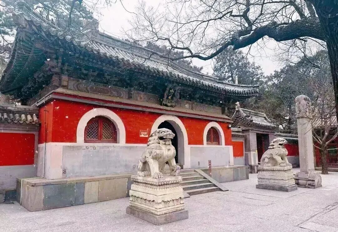 门头沟戒台寺景区雪景,古松古建共白头。戒台寺景区供图。