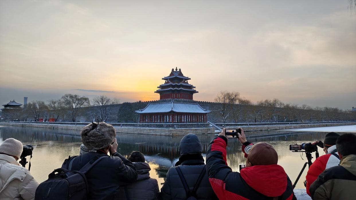 雪霁晨光,古都银装素裹,整座城在皑皑白雪中安静如诗。