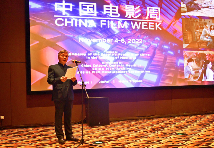 光影传友谊,共贺中毛情。为落实2021年11月中非合作论坛部长级会议“九项工程”和纪念中毛建交50周年,欢庆二十大胜利闭幕,第七届“中国电影周”开幕式暨首映仪式于11月4日在毛里求斯晋非影院隆重举行。驻毛里求斯大使朱立英夫妇,毛艺术和文化遗产部部长阿维纳什·蒂卢克、毛国会议员乔安·杜贺、国会议员桑德拉·马约特、毛电影局董事会主席阿诺德·马丹,驻毛里求斯大使馆公使衔参赞丁佩一、文化参赞张新红、商务参赞曲英及毛社会各界代表等百余名观众受邀出席活动。