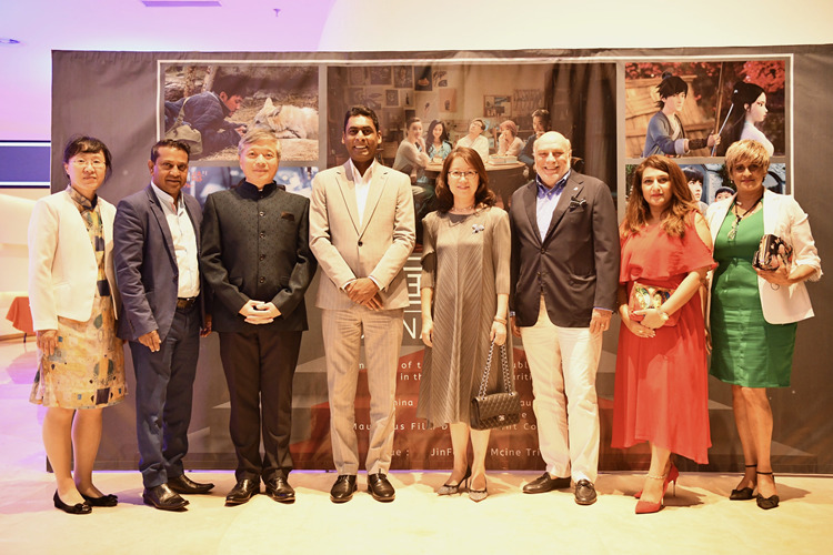 4日晚,落日余晖,晚霞渐染,毛晋非影院外锣鼓喧天,狮舞迎宾,欢声笑语。大屏幕上循环播放的2022年中国电影周宣传片,流光溢彩,中国电影周巨幅海报格外醒目,嘉宾们纷纷合影留念。“中国电影周”在朱立英大使和蒂卢克部长致辞中拉开帷幕。