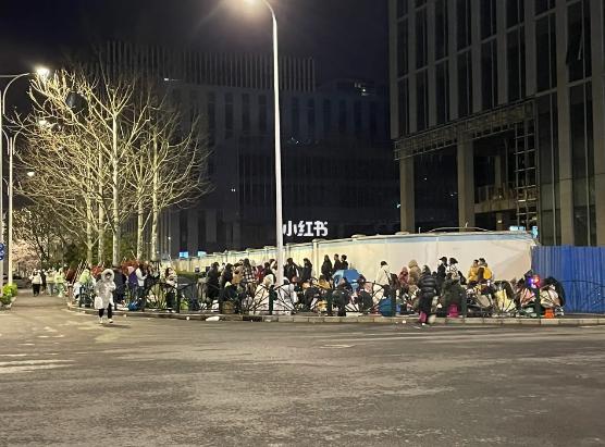 有网友在社交平台上晒图发帖称:半个娱乐圈的粉丝都在睡马路边边!为爱发电了不起!由照片可以看出,大街上有人裹着被子,穿着羽绒服,甚至搭了小帐篷,在深夜路灯的映照下显得格外热闹。