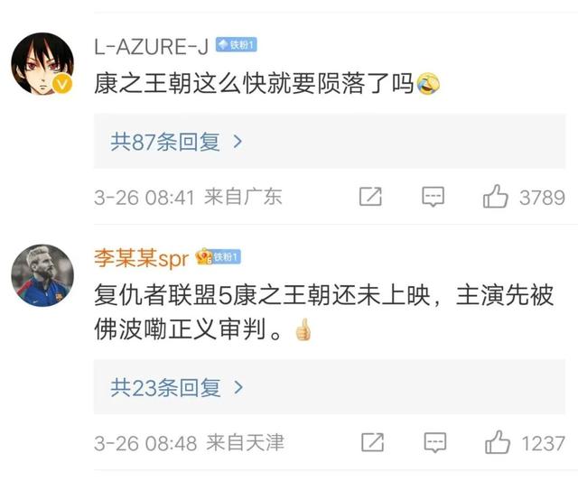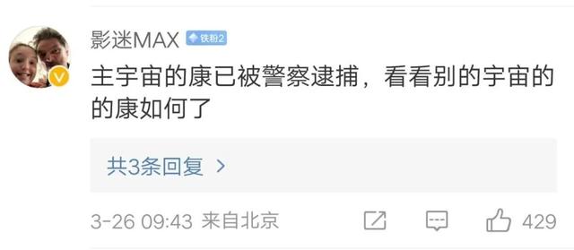 网友对此评论道:“真·反派”;“复联还没出手,警察先出手了”;“康之王朝这么快就要陨落了吗?”