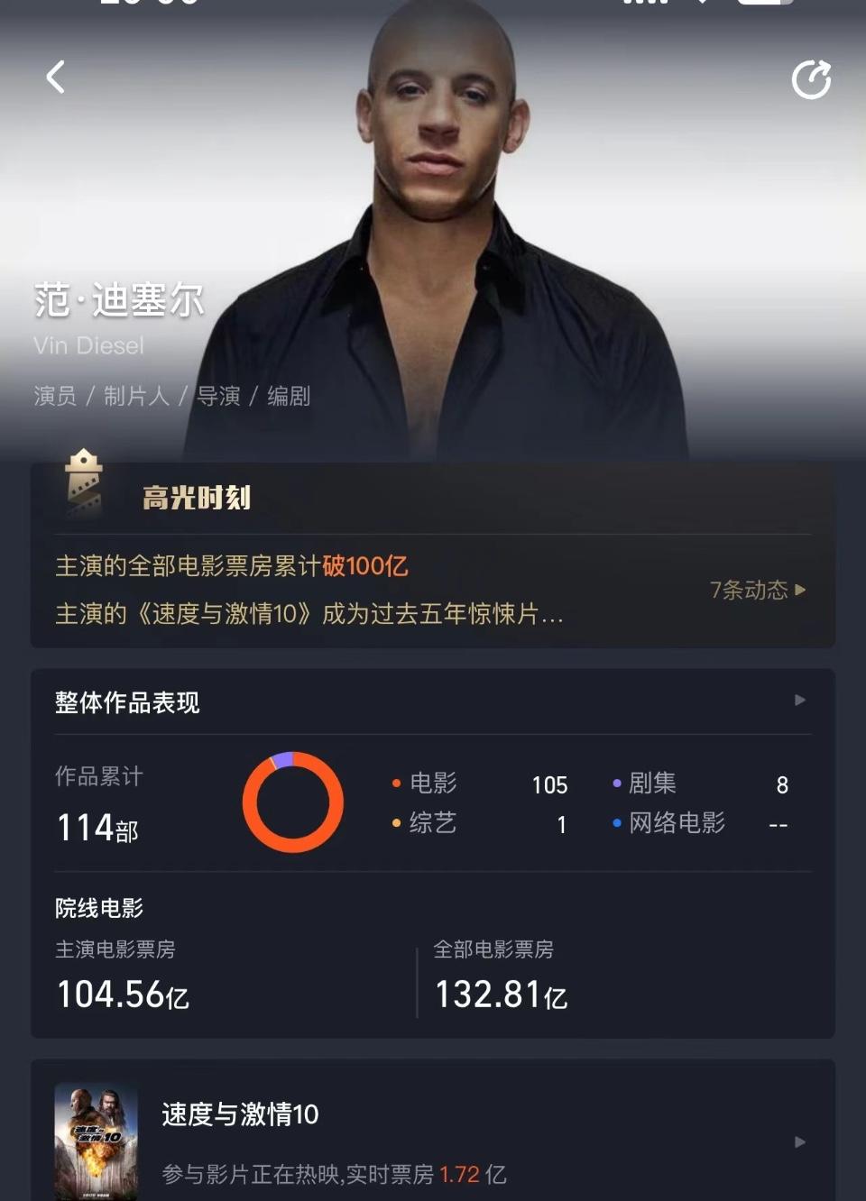 同时,电影《速度与激情10》由范·迪塞尔回归出演,加上他在《银河护卫队3》中为格鲁特配音,两部影片助力范·迪塞尔主演的电影内地票房突破100亿元。