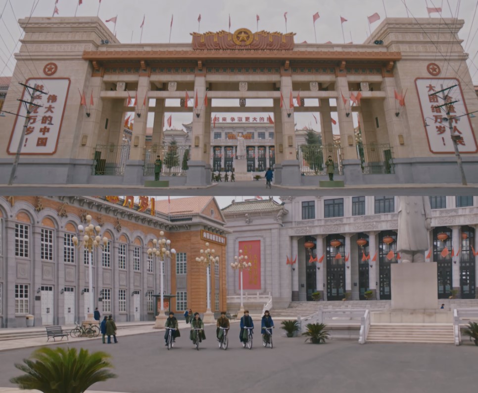 《梦中的什刹海》的几个关键主人公,肖春生(肖战饰)、佟晓梅(李沁饰)、叶国华(刘芮麟饰)等人,就都生活在军区大院里。剧中有一些镜头拍到了这个军区大院“门面”(或是办公区域),外观非常像是人民大会堂,威严肃穆,足见这个大院很不简单。