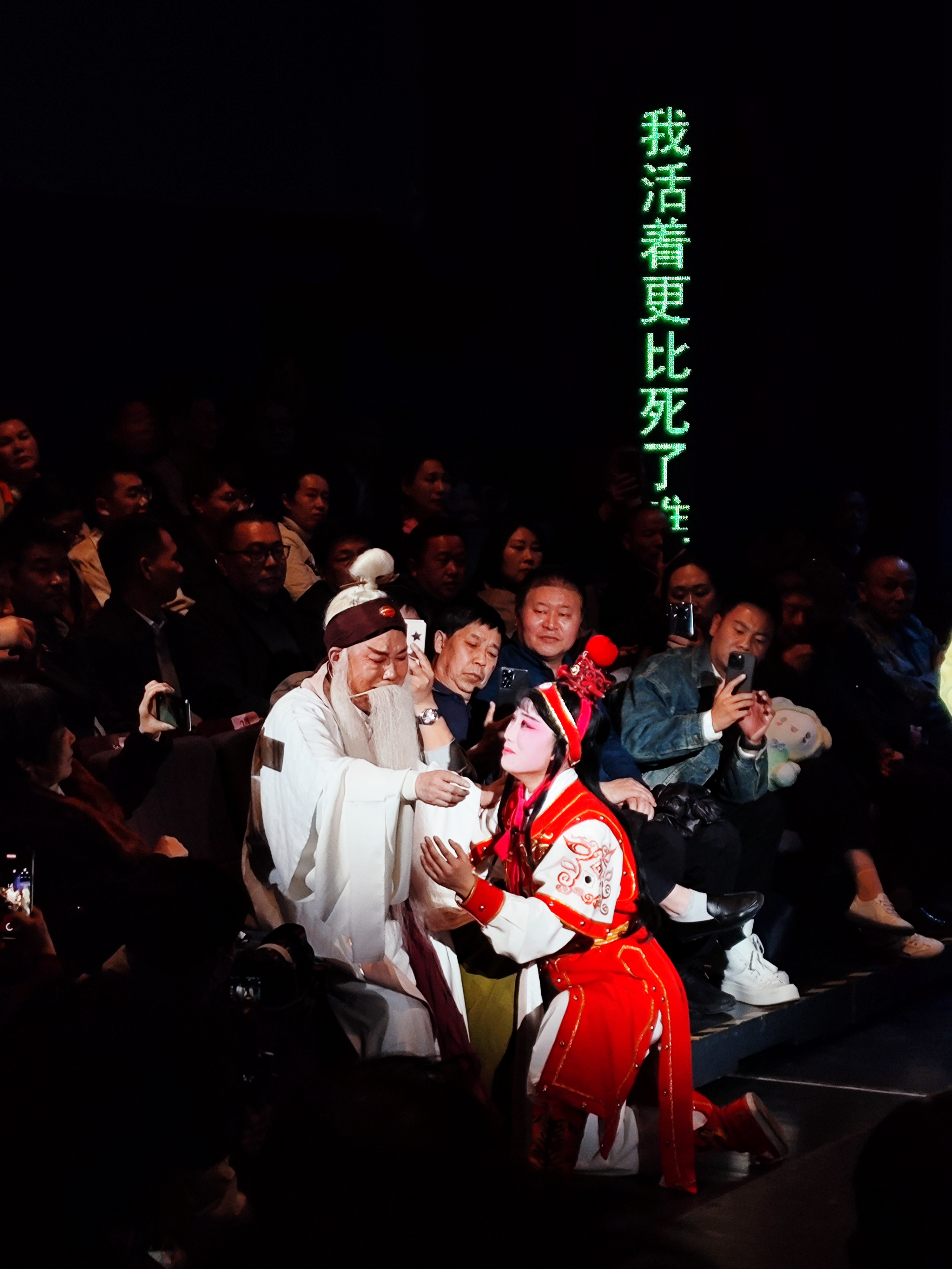“这是小剧场沉浸式的一种技术需要,但也可理解为一种文化姿态,那就是我们的戏曲,我们的豫剧怎么样在新的时代条件下跟观众走得更近。”康伟说,演出最大的特点是剧本,在演出时长上做减法,而“喷空”的引入又是在豫剧减量的基础上作增量。演出现场,很多观众感动的同时会心一笑,这是对戏剧艺术和艺术家的共情共振。