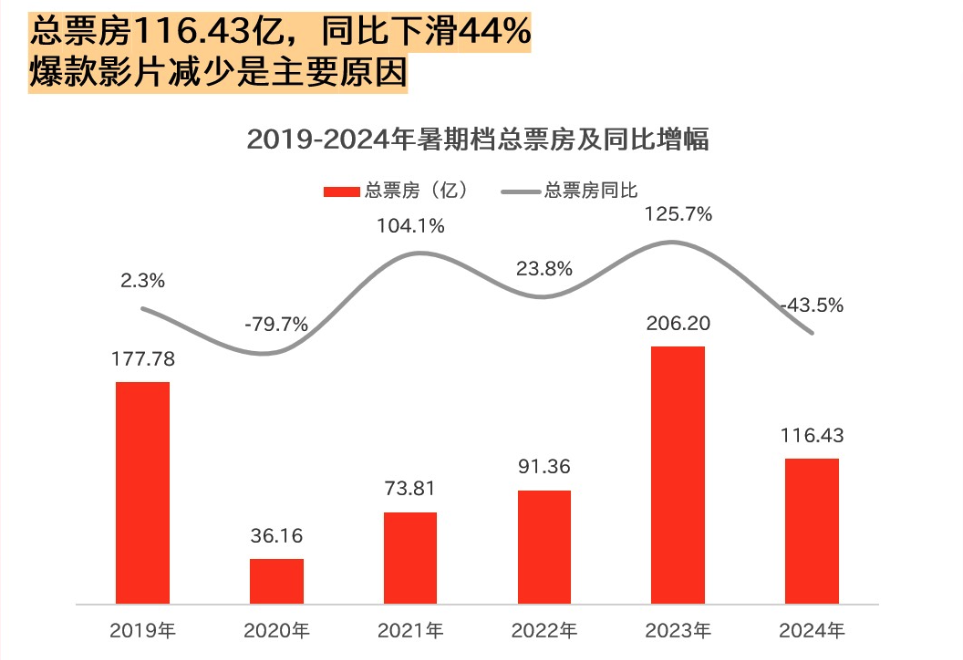 2019-2024年暑期档总票房柱状图,图据猫眼专业版