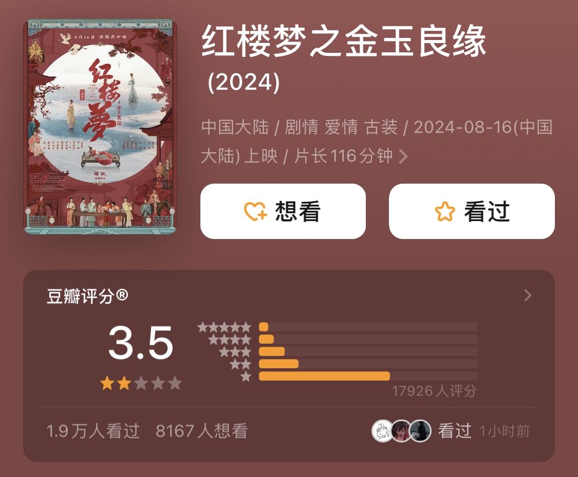 暑期档豆瓣评分最低、特别具有典型性的一部影片,是胡玫导演的《红楼梦之金玉良缘》(以下简称《金玉良缘》)。