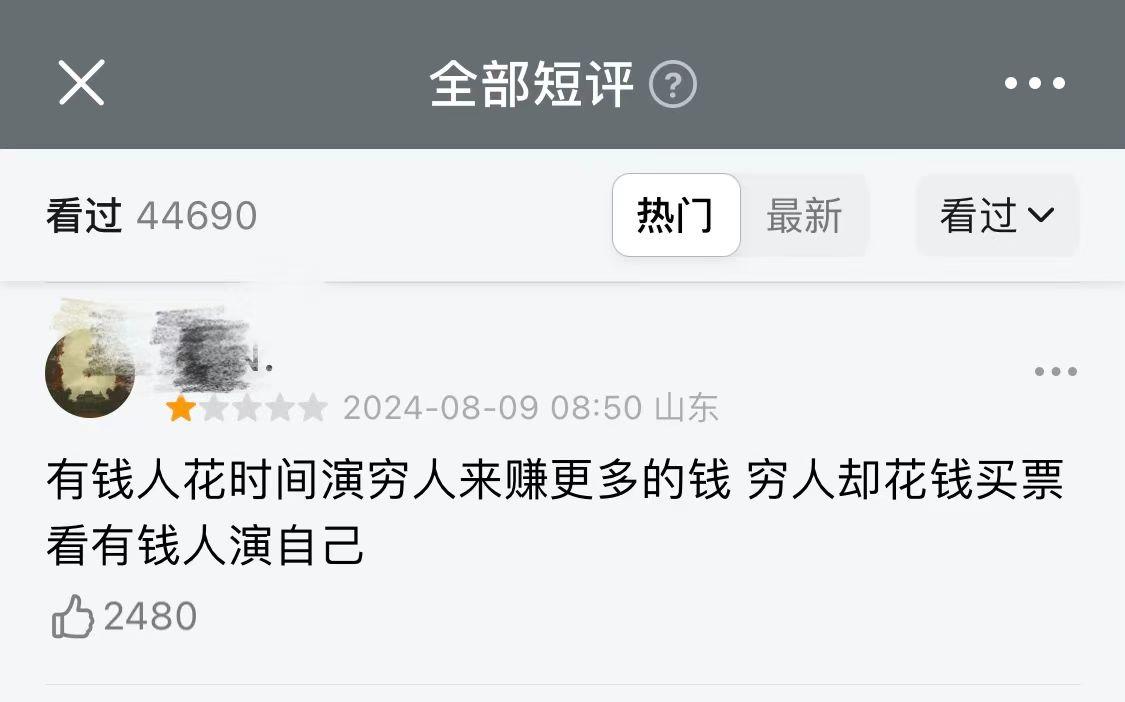 可是徐峥的“改编”,非但没有深刻到揭示出现实困境的根源,反而用一种“努力才能成功”的叙事,炖了一锅温情的鸡汤。与其浅尝辄止,不如不去触碰,否则对于某些群体来说,这并不是一种宽慰,更像是冒犯。更不用说,还有“富人演穷人,赚穷人的钱”这种毫无道理却能陷影片于无法自辩的审判先入为主。