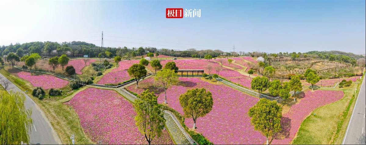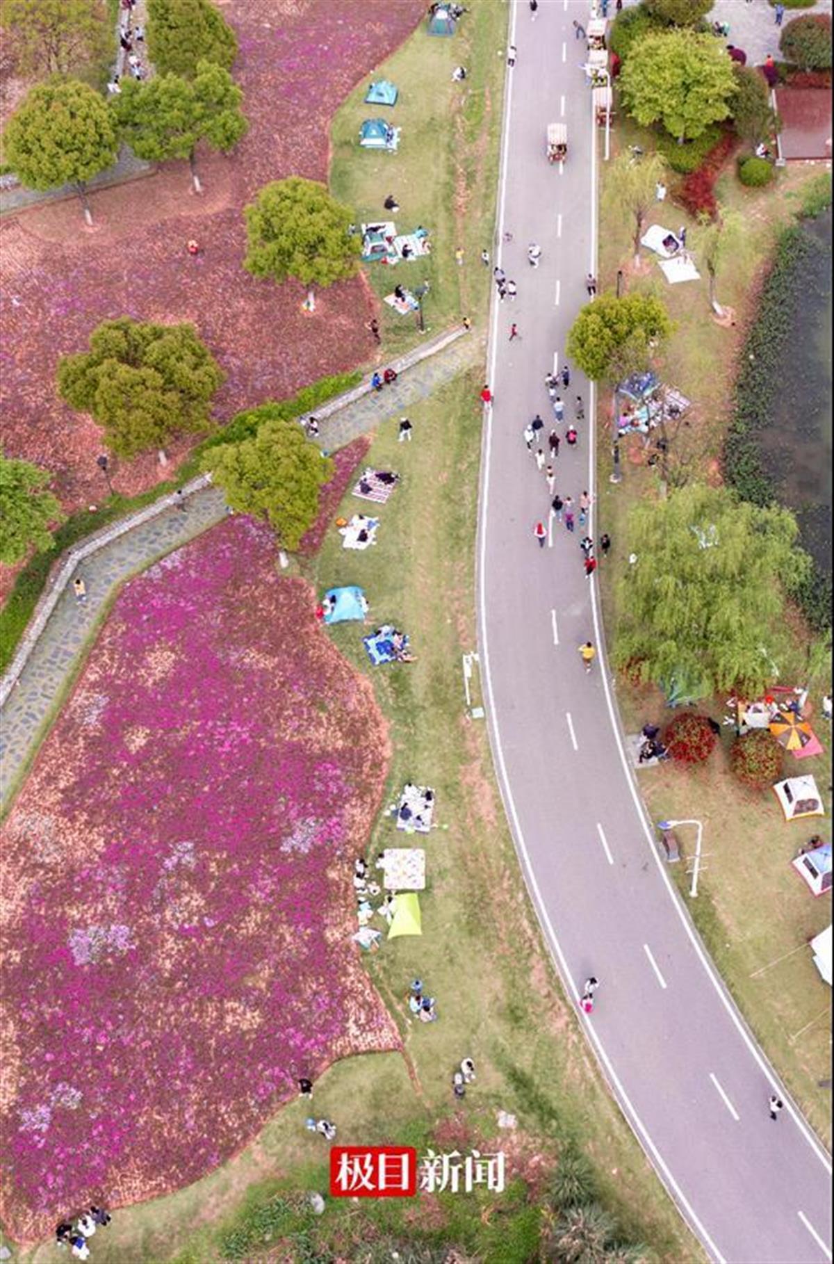 大家都说,漫山遍红的芝樱花海是“春日限定”,若想把野餐垫铺到水边,九曲湾湿地则更是“限量款”。这是一处季节性景观,当每年的春天招手而去后,湿地便会被通顺河水没过,水岸线“九曲”变“一曲”。
