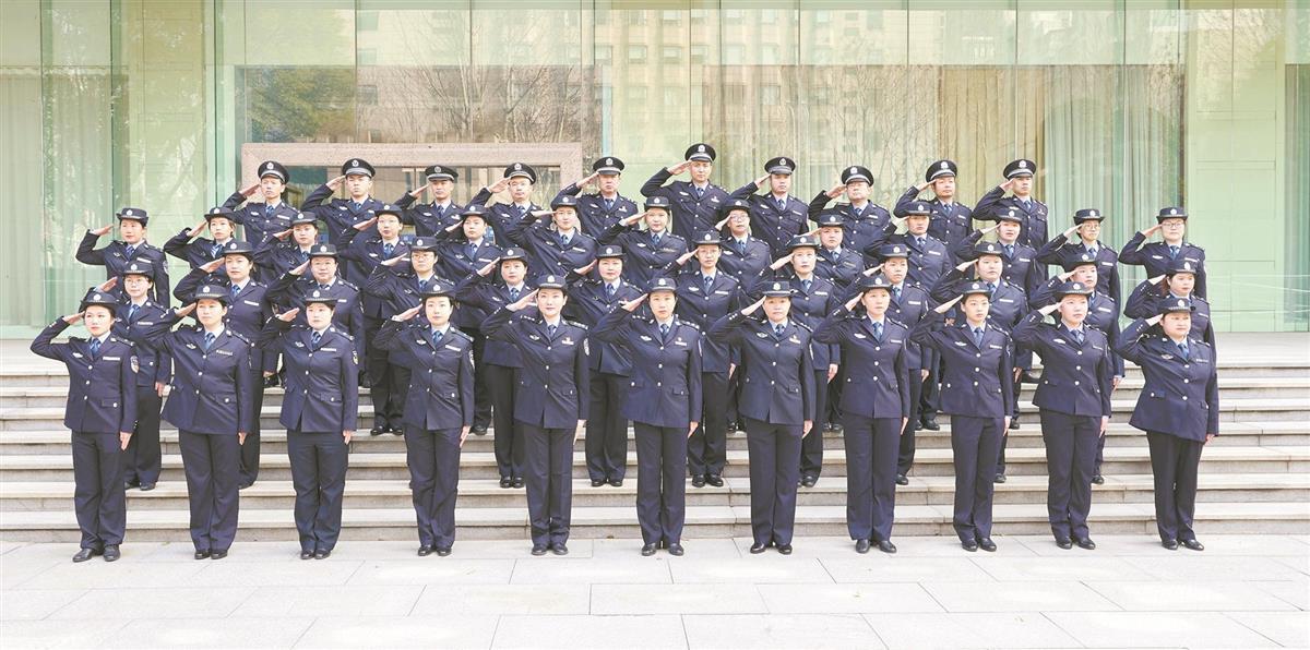 110报警服务台民警辅警合影(通讯员应后威摄) A group photo of police and auxiliary police of 110 alarm service desks by Ying Houwei