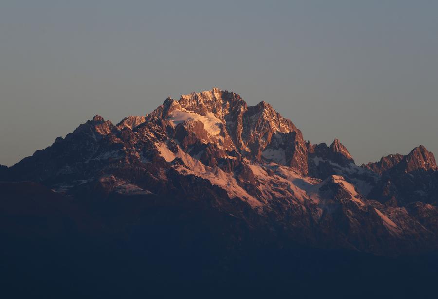 This photo shows sunlight shining on the Yulong Snow Mountain in Lijiang, southwest China's Yunnan Province, Nov. 29, 2025. (Photo by Zhao Qingzu/Xinhua)