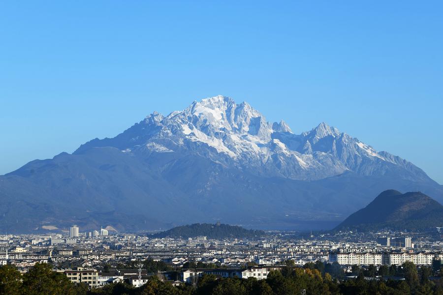 LIJIANG, Nov. 29 (Xinhua) -- The snow-capped Yulong Snow Mountain is located in the northwest of the city of Lijiang with the main peak elevation being 5,590.2 meters. Take a look at the majestic scenery here.