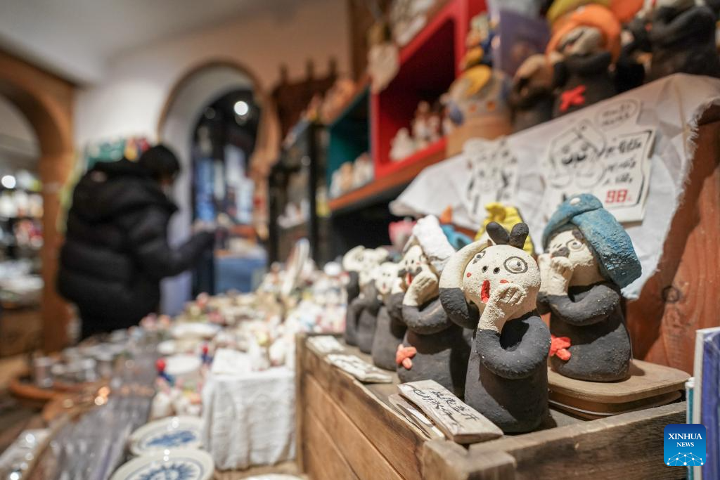 Tourists choose cultural and creative products at a bookstore by Cuihu Lake in Kunming, southwest China's Yunnan Province, Jan. 13, 2026. Cuihu Lake is both a signature landscape of Kunming and a testament to the city's memories, surrounded by historical legacies such as the former sites of the National Southwestern Associated University and Yunnan Military Academy.