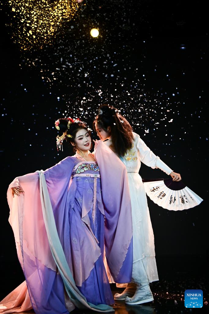 The Troupe's livestreams have achieved a single-session exposure of over 5 million views, with group livestreaming contributing to a roughly 10 percent increase in offline box office revenue. The elegance of classical music and dance are gaining growing appeal among younger audiences. (Xinhua/Zou Jingyi)