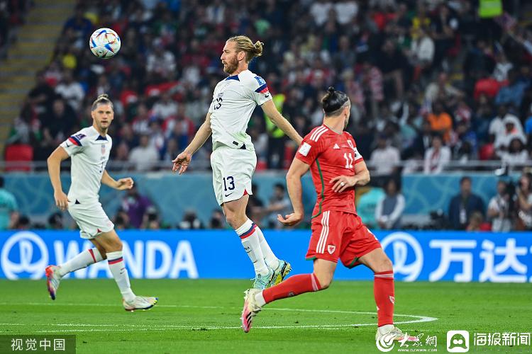 2022卡塔尔世界杯B组首轮:威尔士1-1美国。赛场上出现万达文旅广告牌
