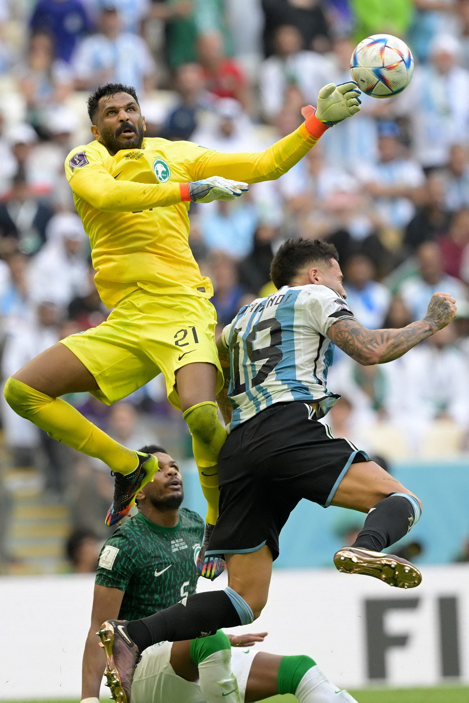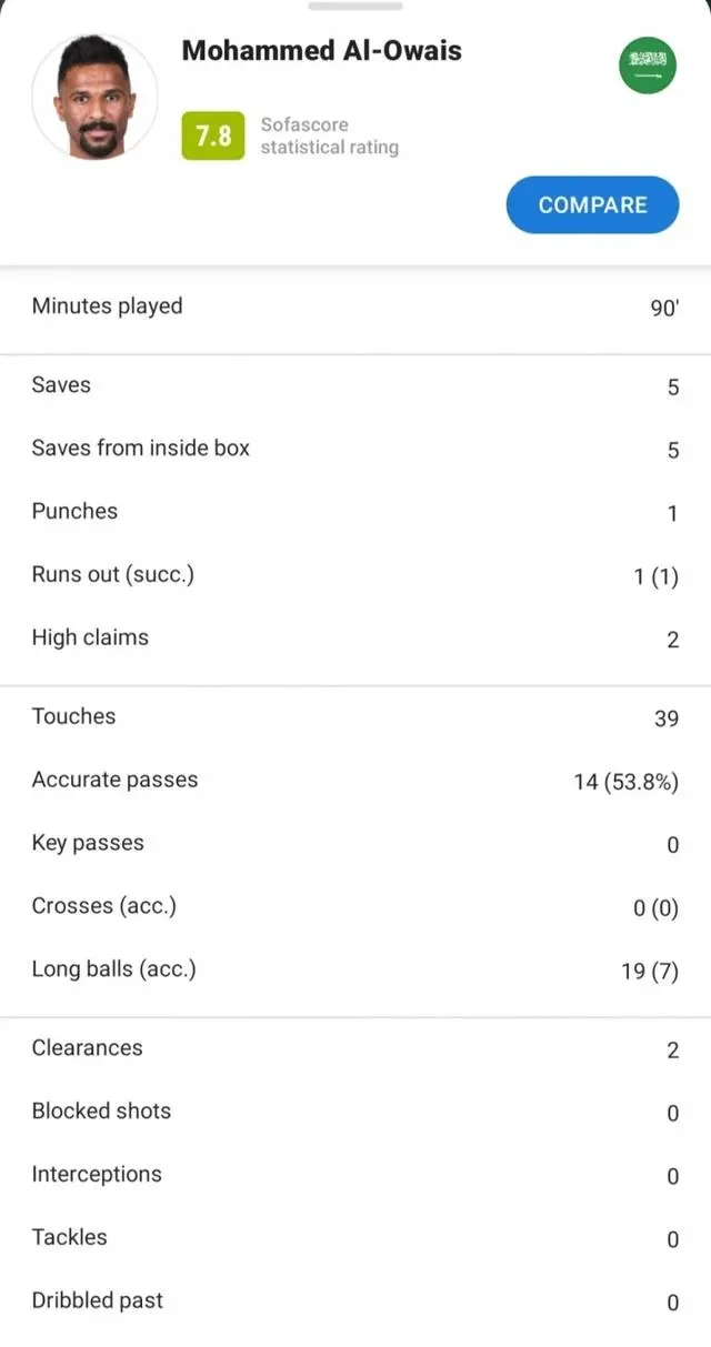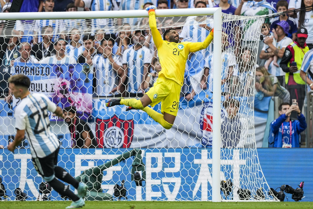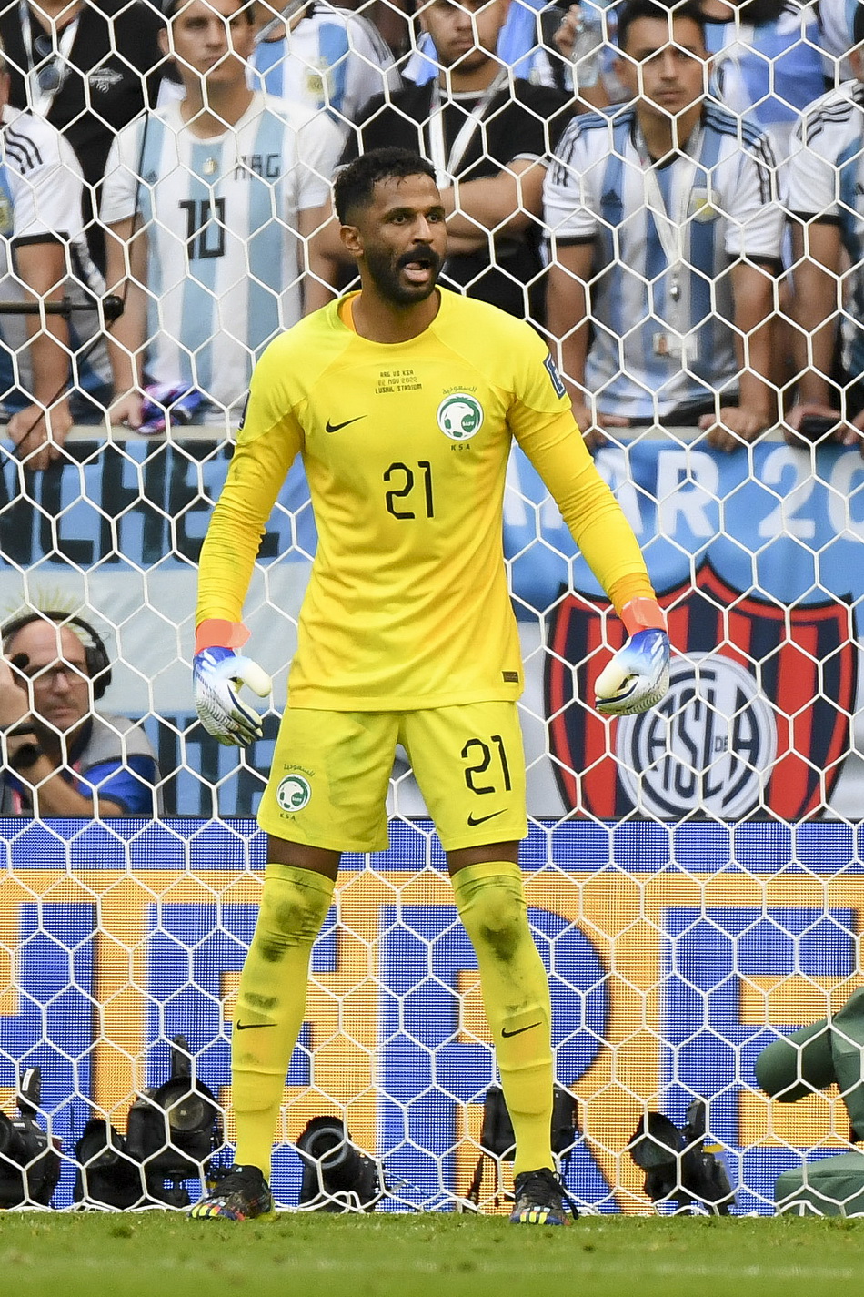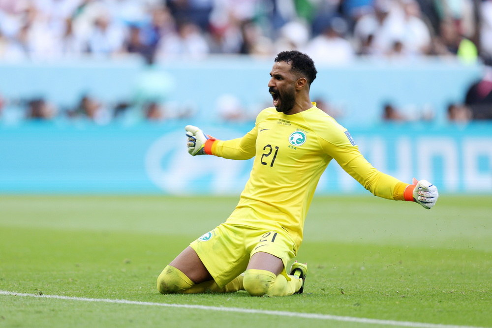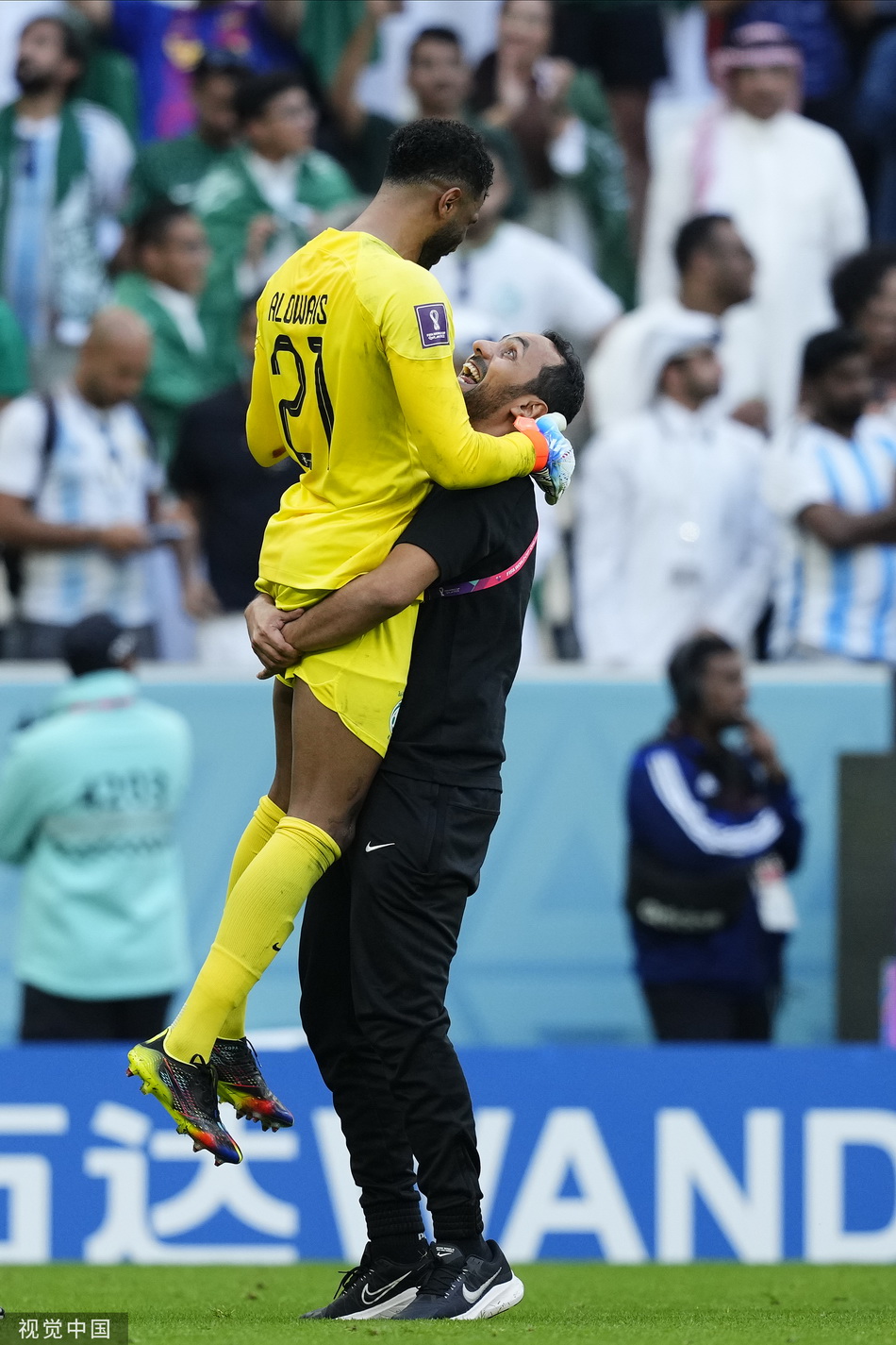 本场比赛中沙特队门将奥维斯(MohammedAl-Owais)一战封神,凭一己之力奋力筑起一面铜墙铁壁。面对阿根廷球员的频繁射门,奥维斯高接低挡,全场共贡献5次扑救、2次高空拦截、2次解围……除了梅西的点球破门外,阿根廷所有射正的球都被奥维斯拒之门外。