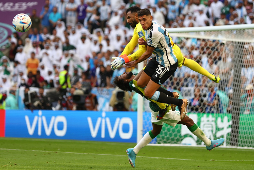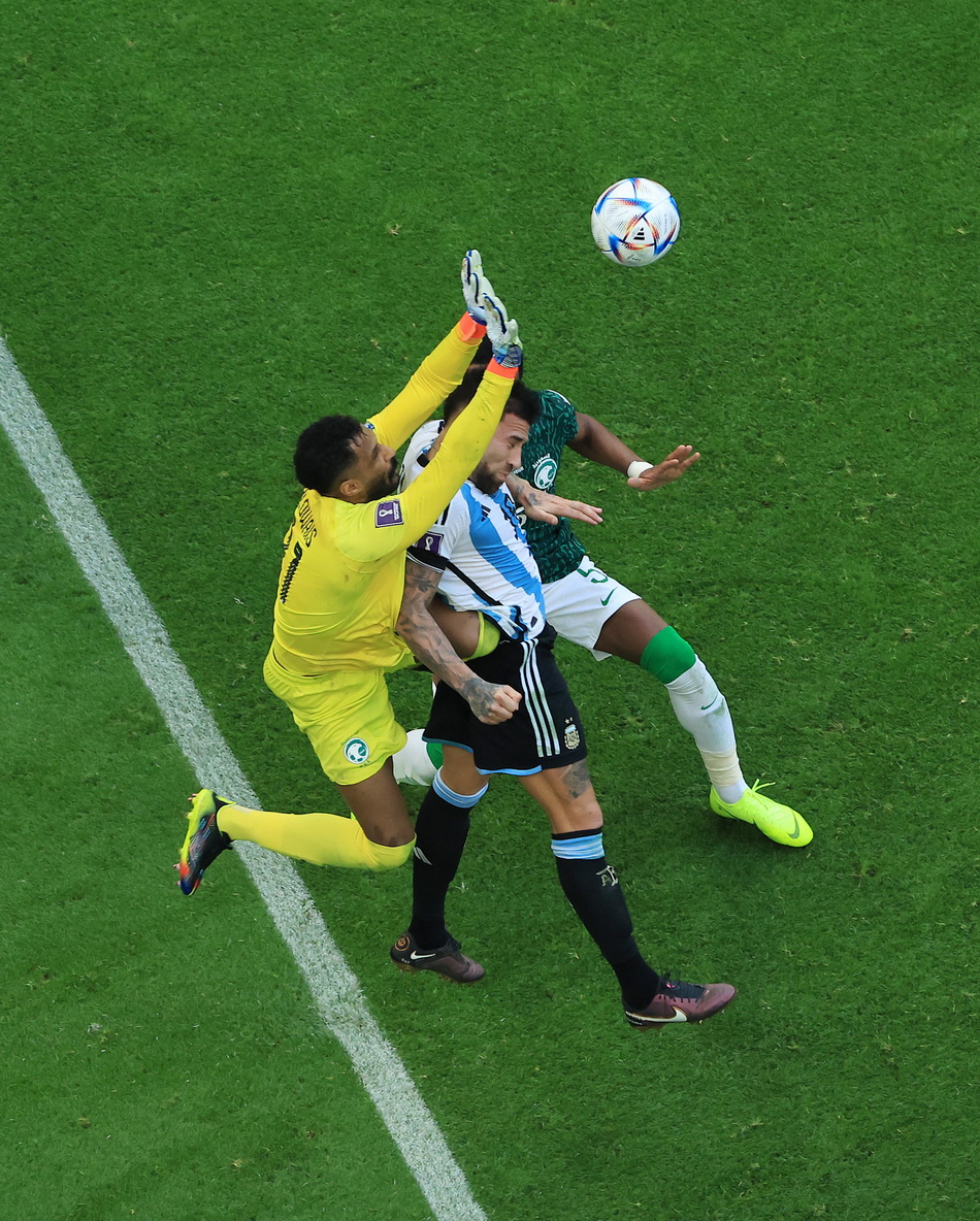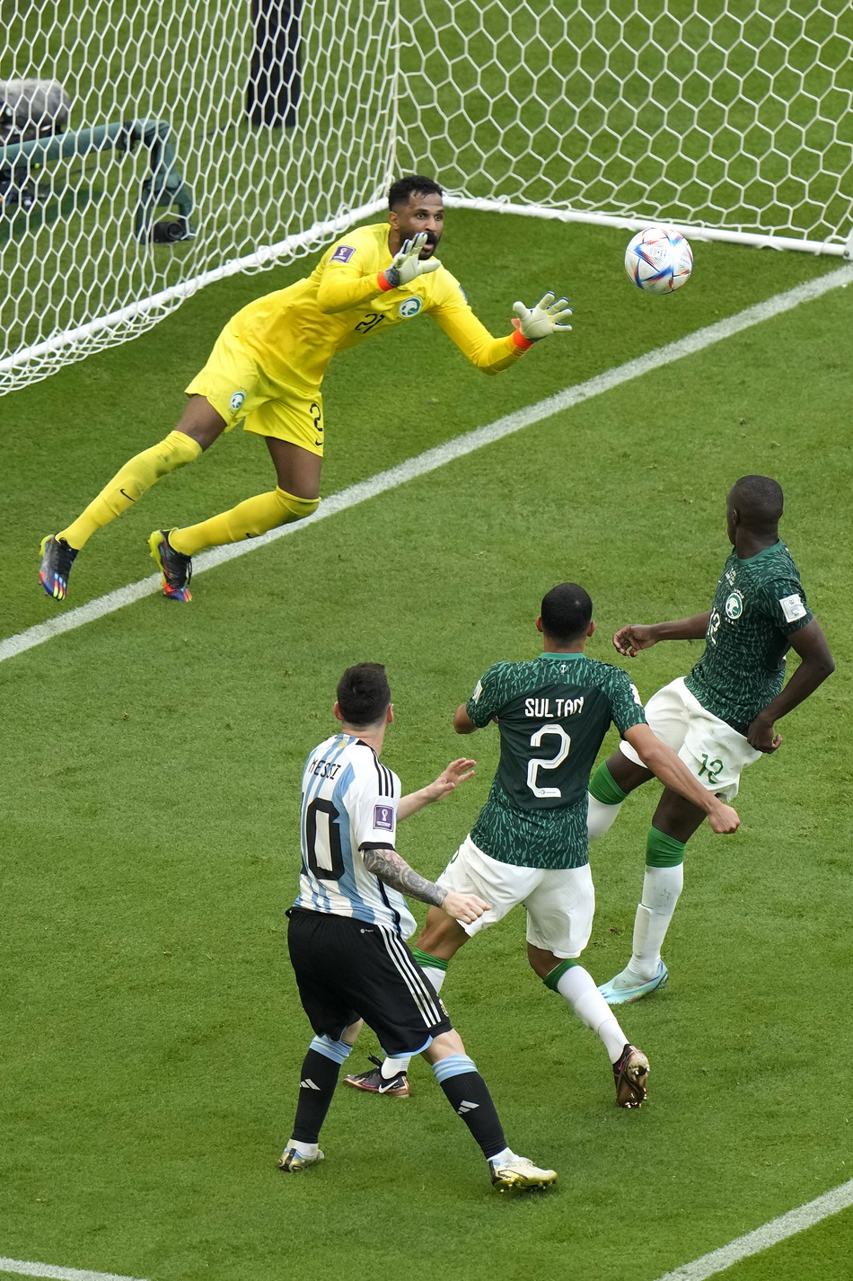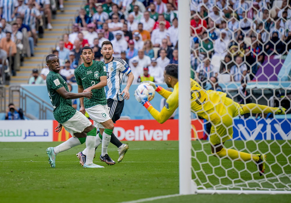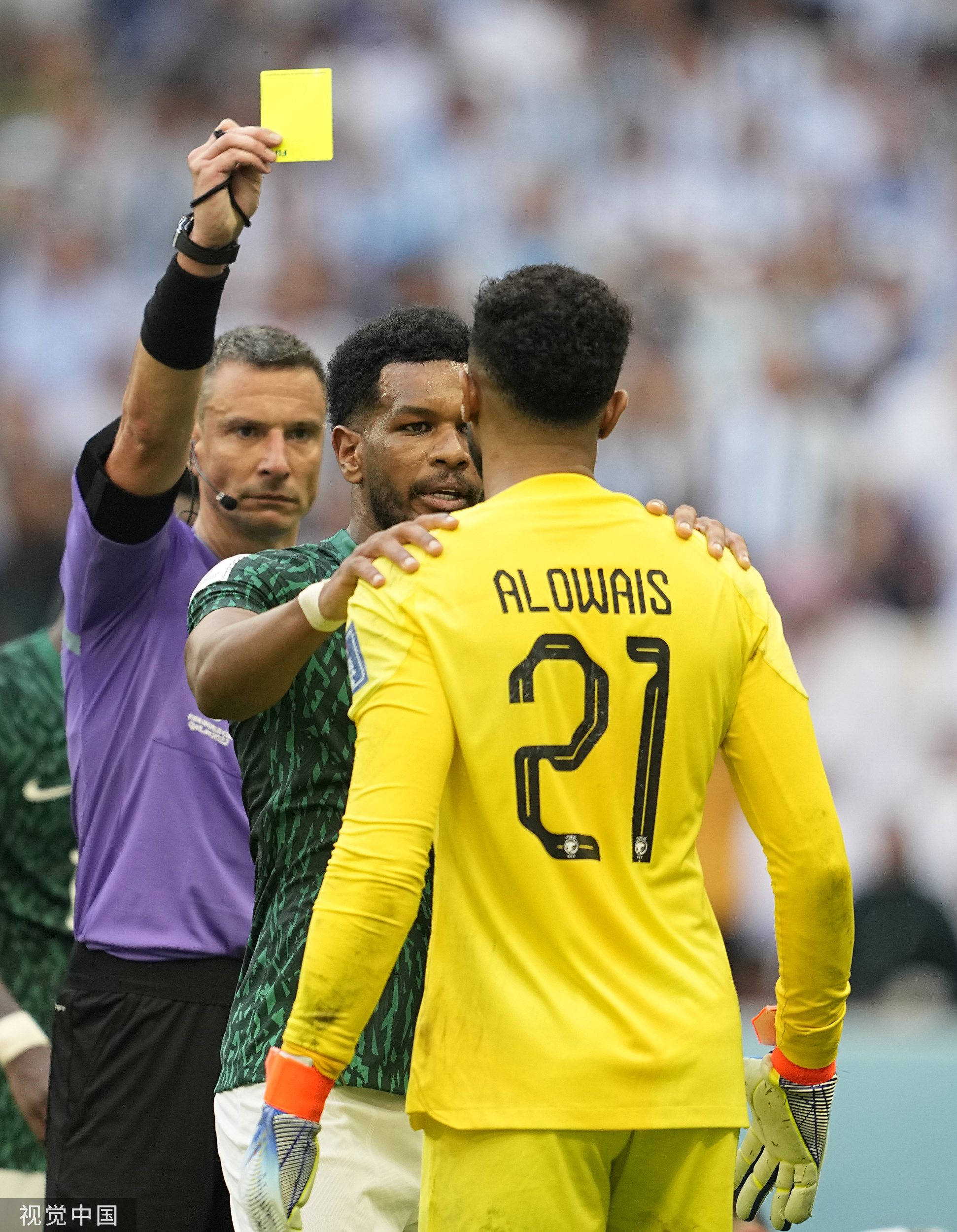 本场比赛中沙特队门将奥维斯(MohammedAl-Owais)一战封神,凭一己之力奋力筑起一面铜墙铁壁。面对阿根廷球员的频繁射门,奥维斯高接低挡,全场共贡献5次扑救、2次高空拦截、2次解围……除了梅西的点球破门外,阿根廷所有射正的球都被奥维斯拒之门外。