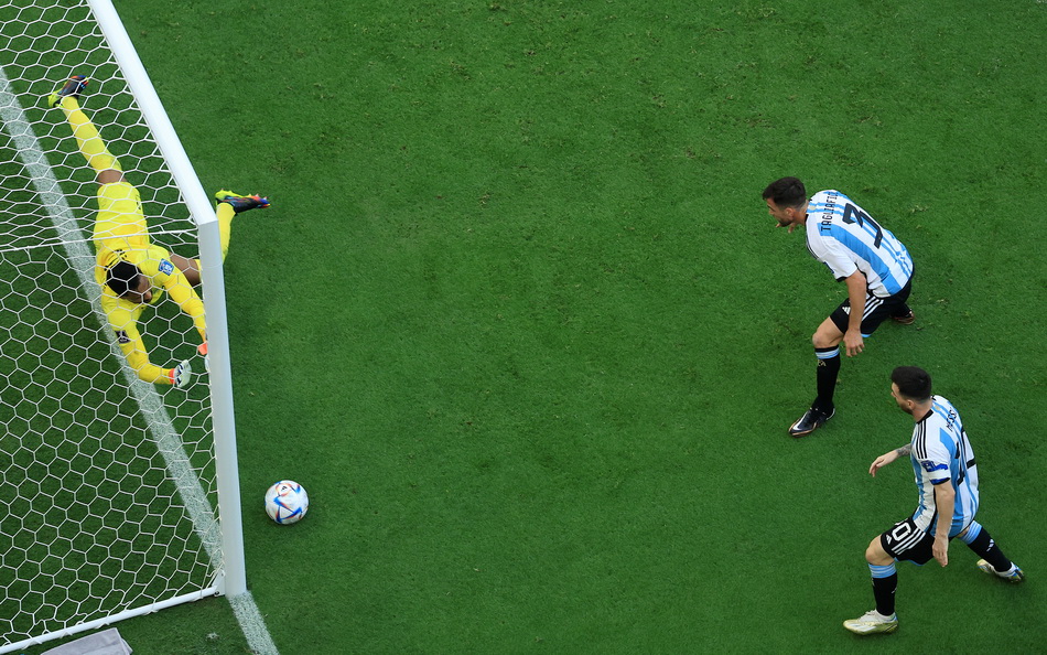 上半场第10分钟,梅西点球轻松破门,这是奥维斯全场唯一没有扑下的球