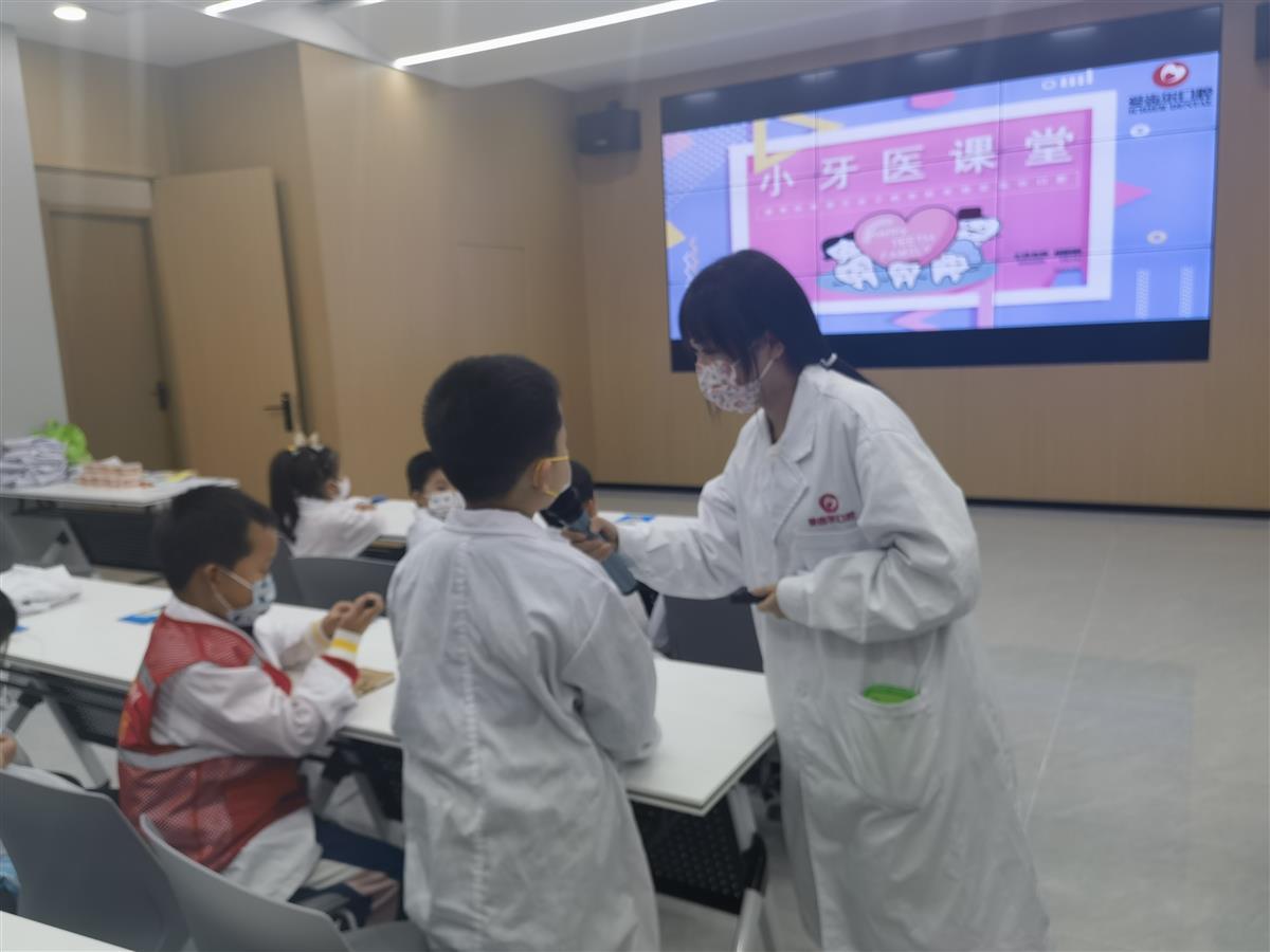 娟娟老师告诉大家,口腔健康是全身健康的基础,儿童口腔的关键是“预防大于治疗”,从小养成良好的口腔习惯很重要。课堂上,小记者们积极举手回答娟娟老师的提问,得到了计时沙漏、儿童牙线等互动礼品。小记者吴信成表现尤为突出,由于做了充足的课前预习,他对口腔知识掌握得非常丰富,回答问题头头是道,得到老师的频频夸赞。