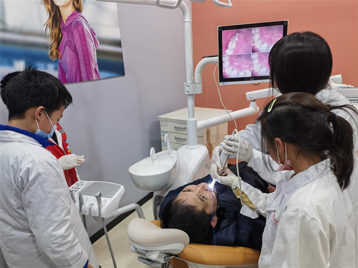 学习完毕后,我们就分成两组进行参观。我先了解到看牙医就诊的步骤,然后来到一个治疗室,戴上一次性橡胶手套,做好手部消毒,在牙医老师手把手的指导下,我们每个小记者都亲自操作了这个神奇的设备。通过一根长管子头部的相机,就可以把所有牙齿拍照,然后在一个大屏幕上就可以观察牙齿是否健康了。让我惊讶的是,牙医老师说我的牙齿是保护得最好的,我顿时偷偷乐了起来,心想以后我一定更要保护好牙齿。