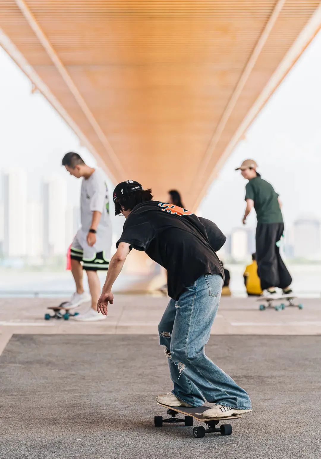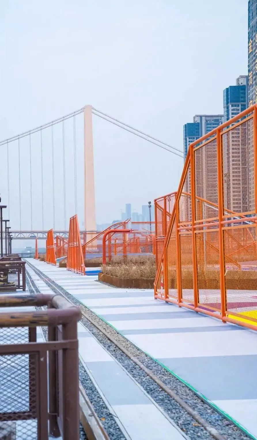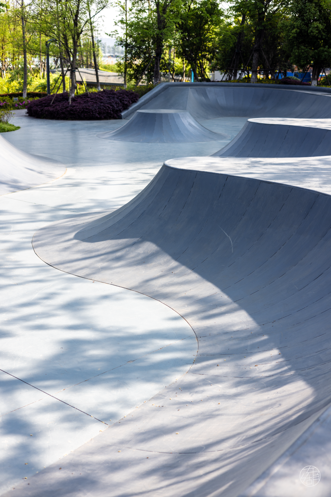它背靠杨泗港大桥,有小白塔下的滑板公园,还有涂鸦T台、攀岩网、跷跷板、滑梯,还可以玩滑轮、滑板~